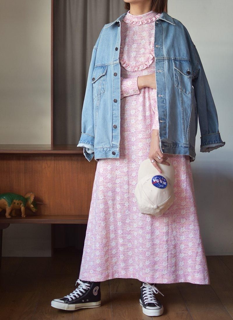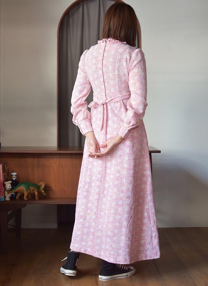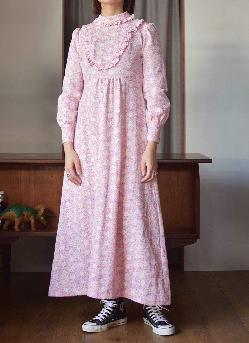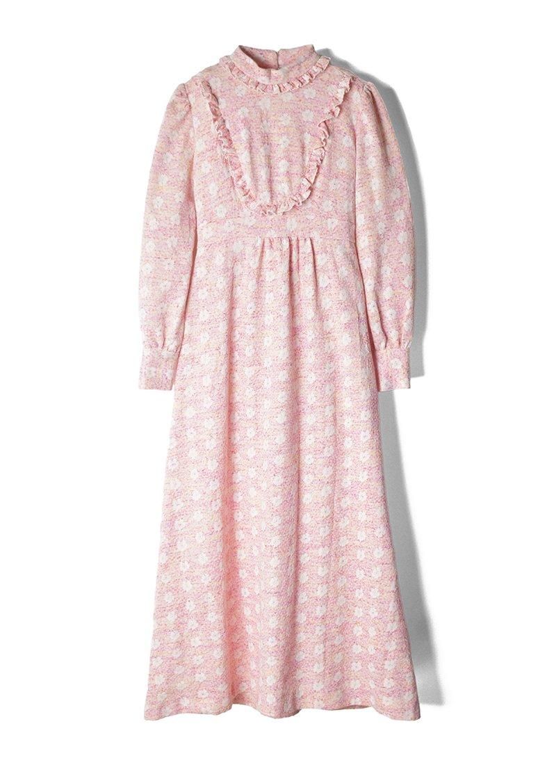 ニュアンスの花柄が大人でも可愛すぎずに着ていただける70年代頃のロングドレス。