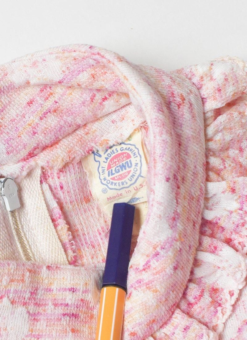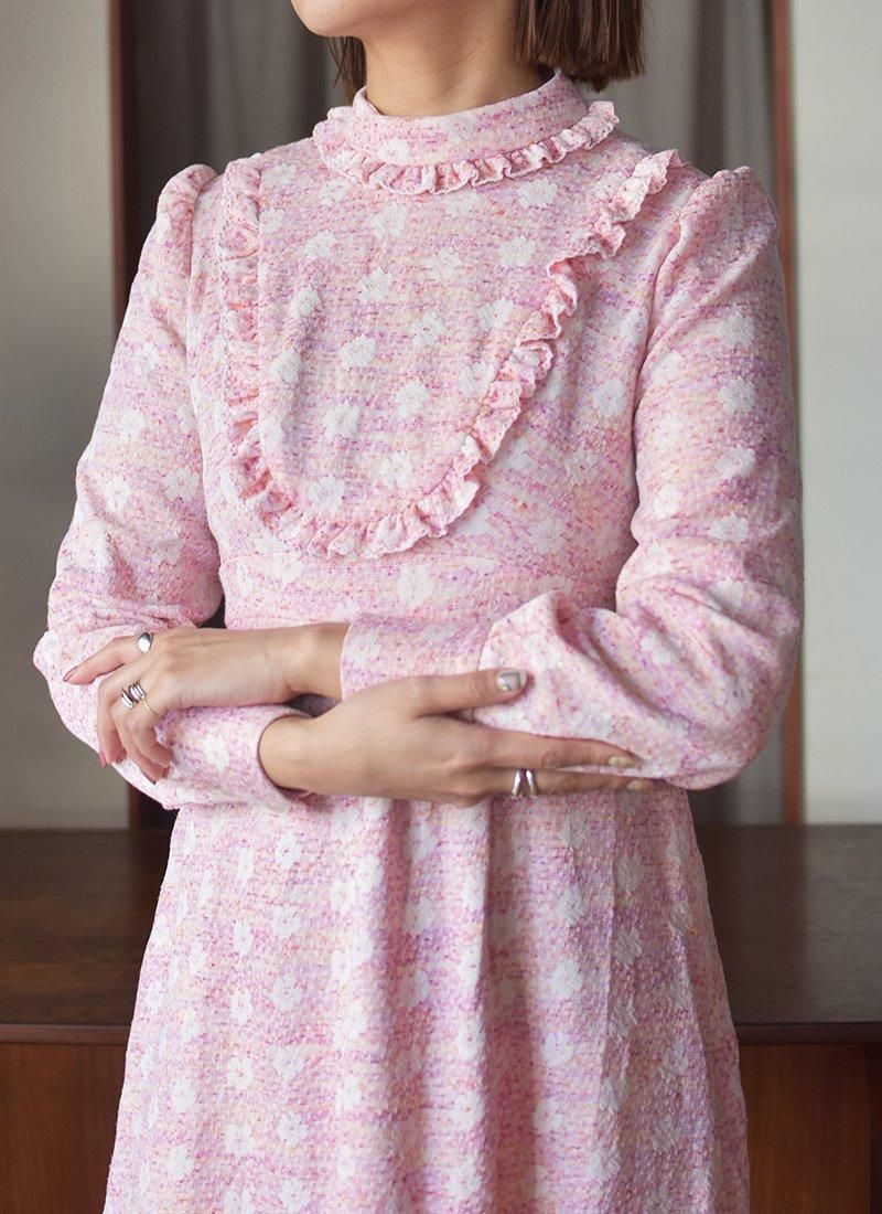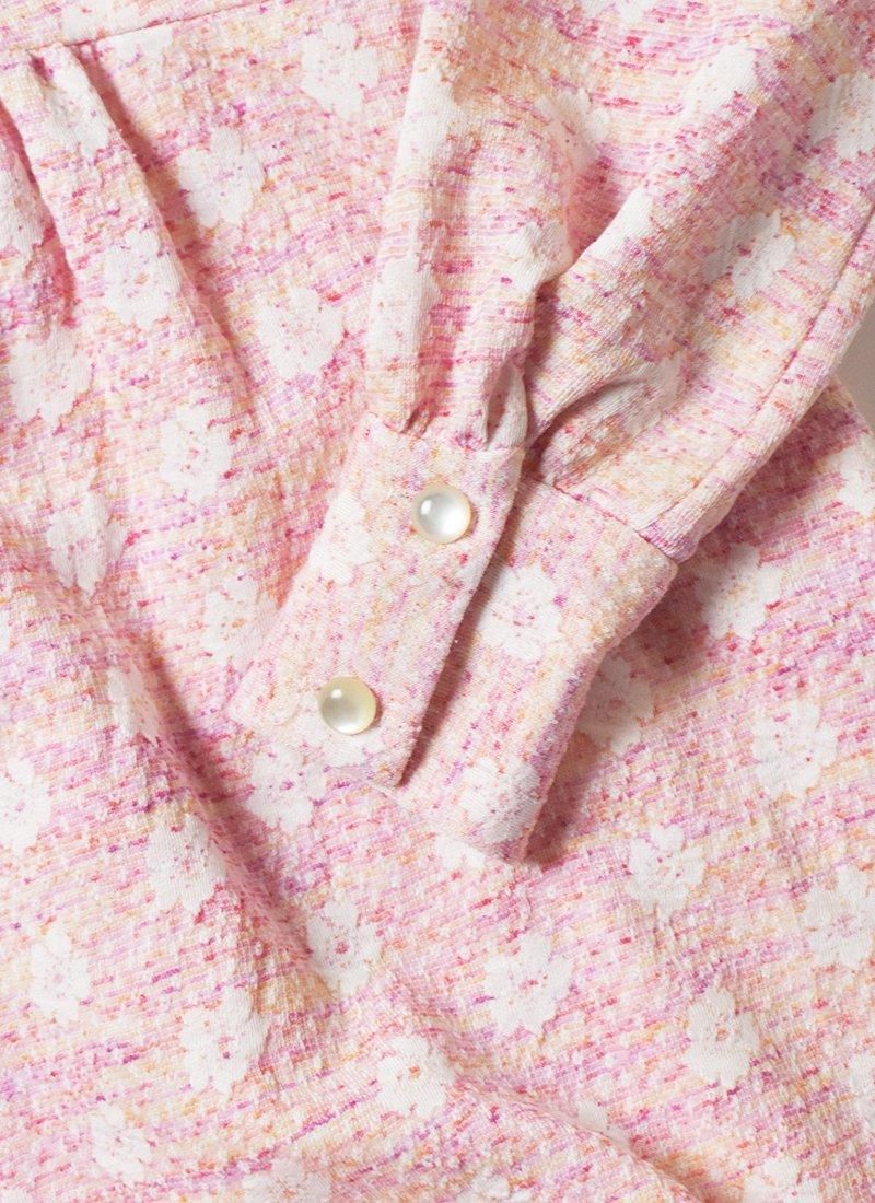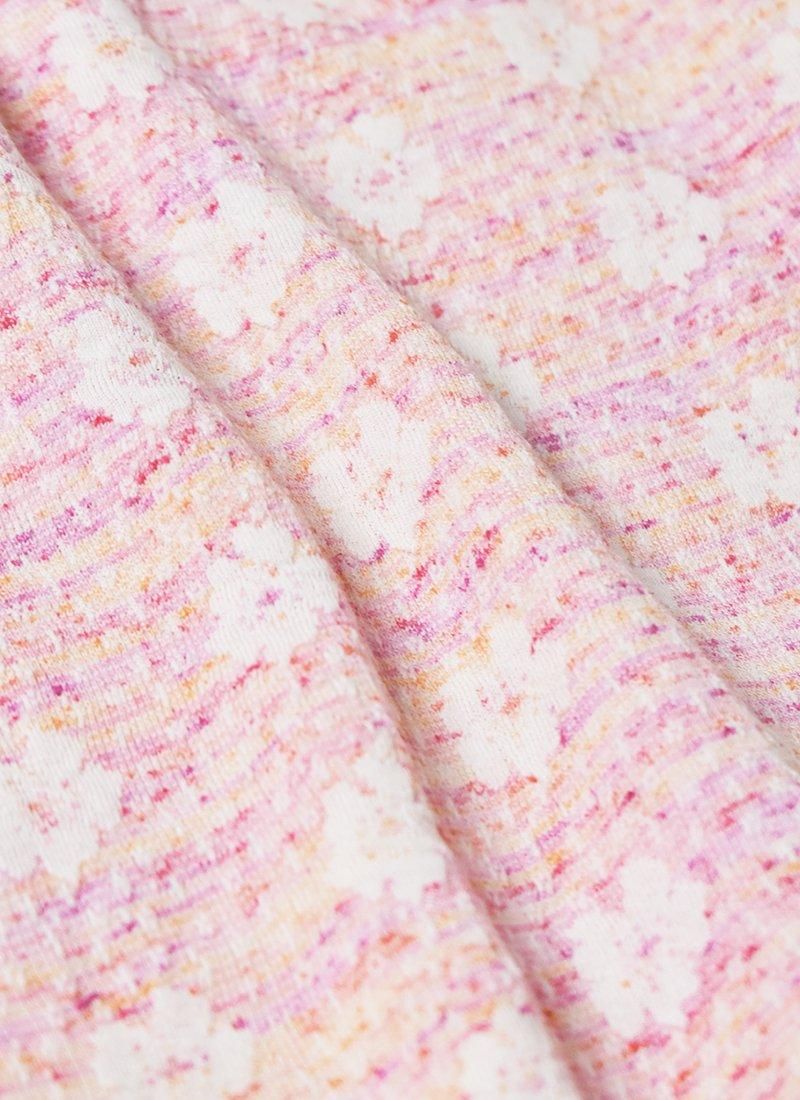 ホワイト、ピンク、オレンジと3色MIXで仕立てられたジャガード生地は独特な立体感があり、上品な印象です。