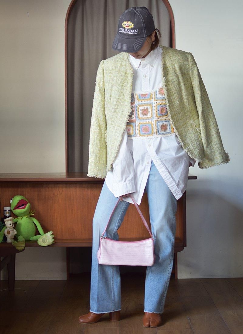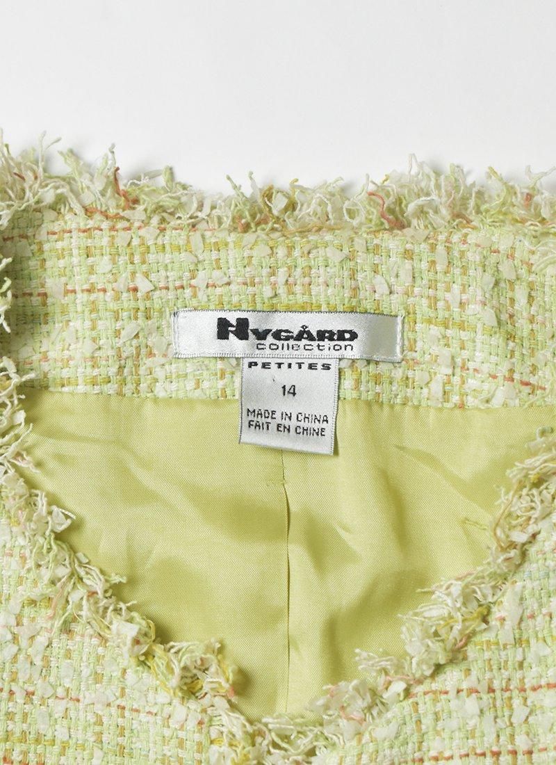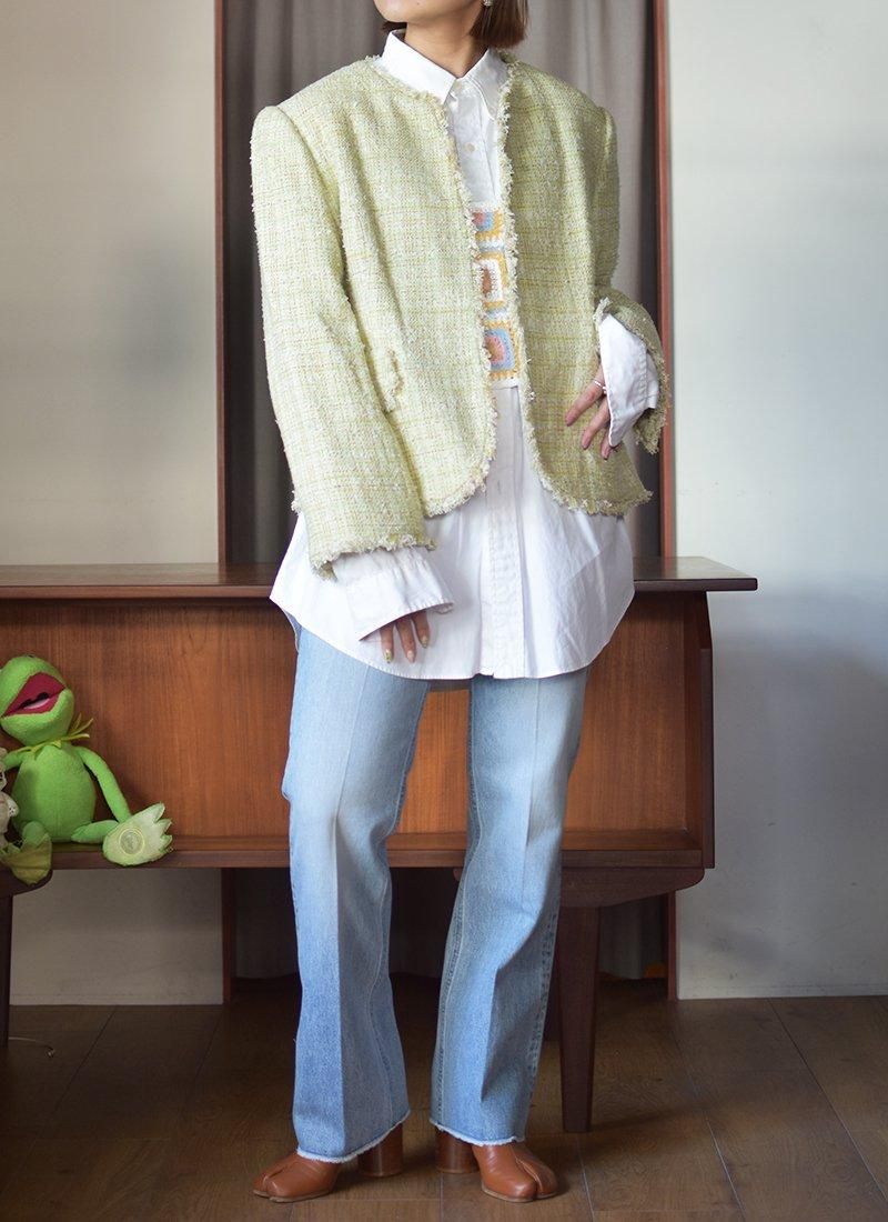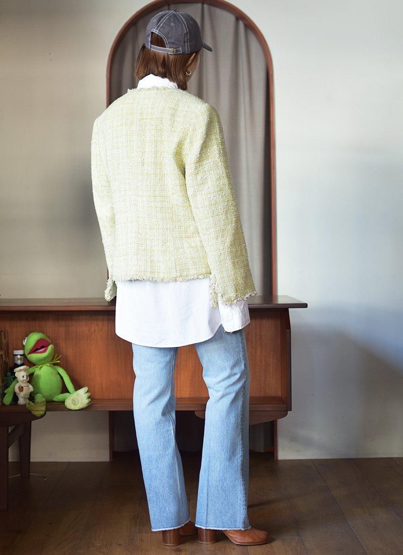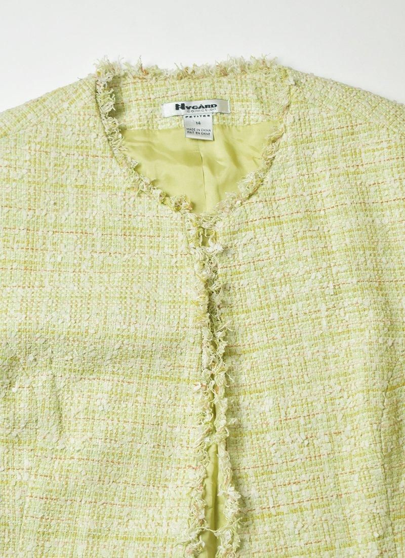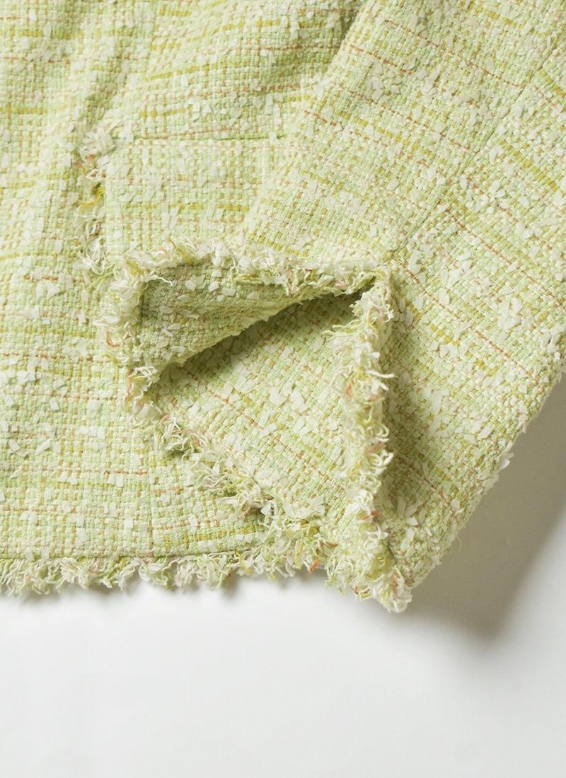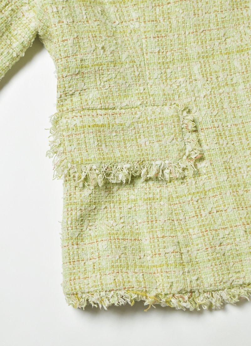 爽やかなライトグリーンが目を惹くシルクツイードジャケット。