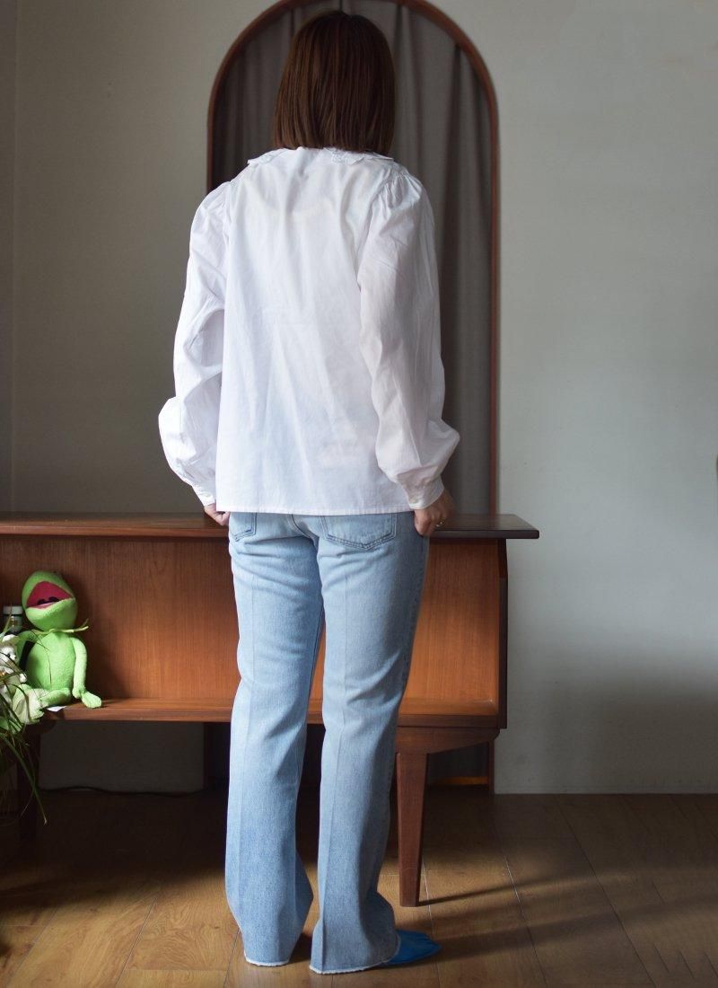 首元のフリルとふんわりとしたお袖が可愛らしいユーロブラウス。