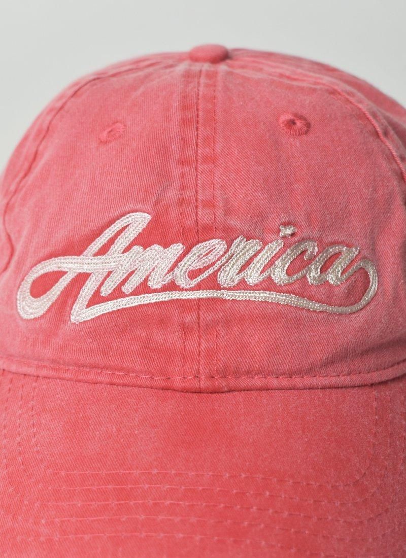 チャーンステッチで施された「アメリカ」ロゴが可愛いですね。