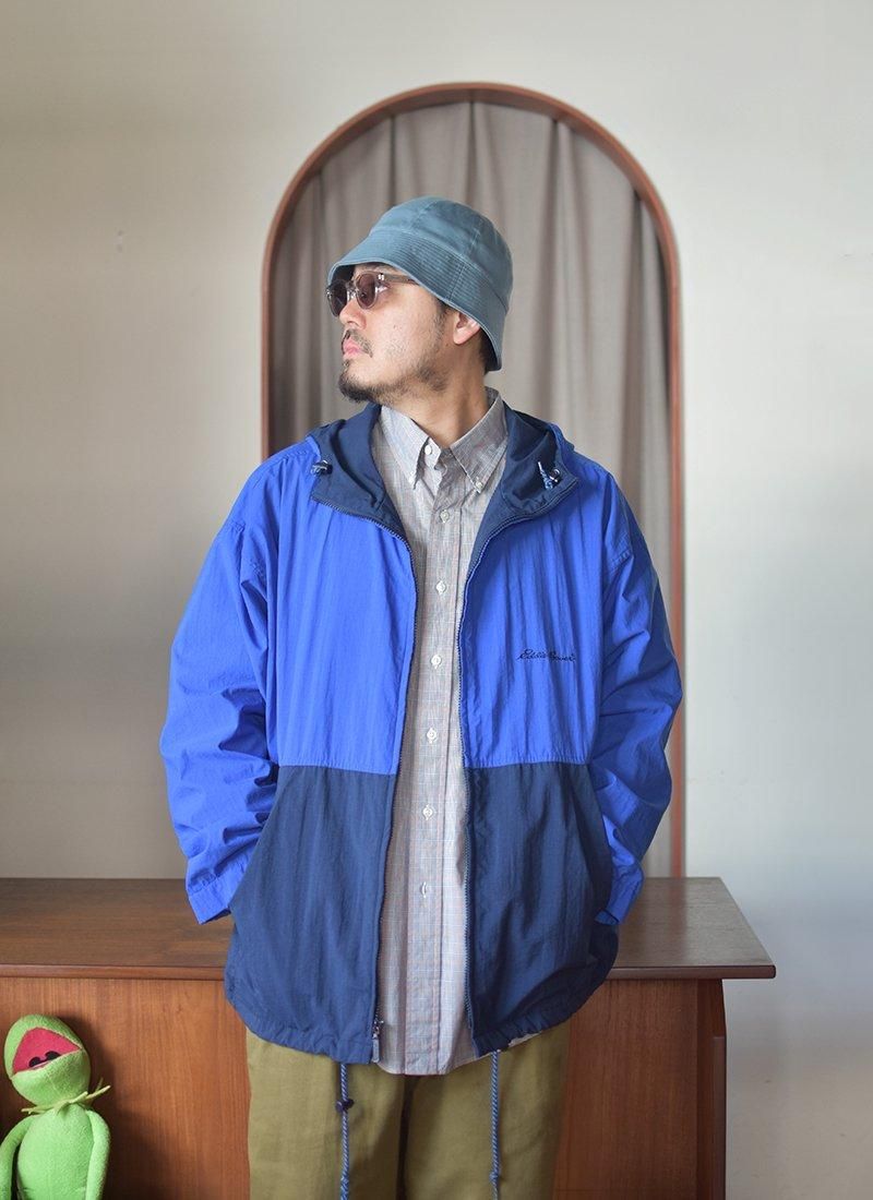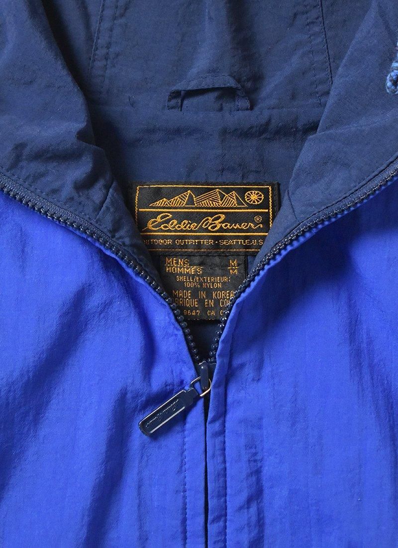 ブルーとネイビーの組み合わせが都会的な雰囲気漂う90年代頃「エディーバウワー 」のナイロンジャケット。