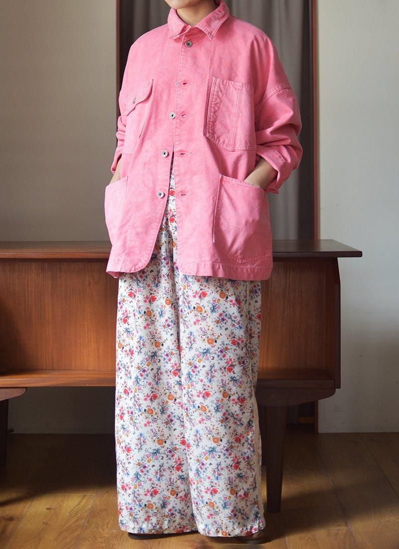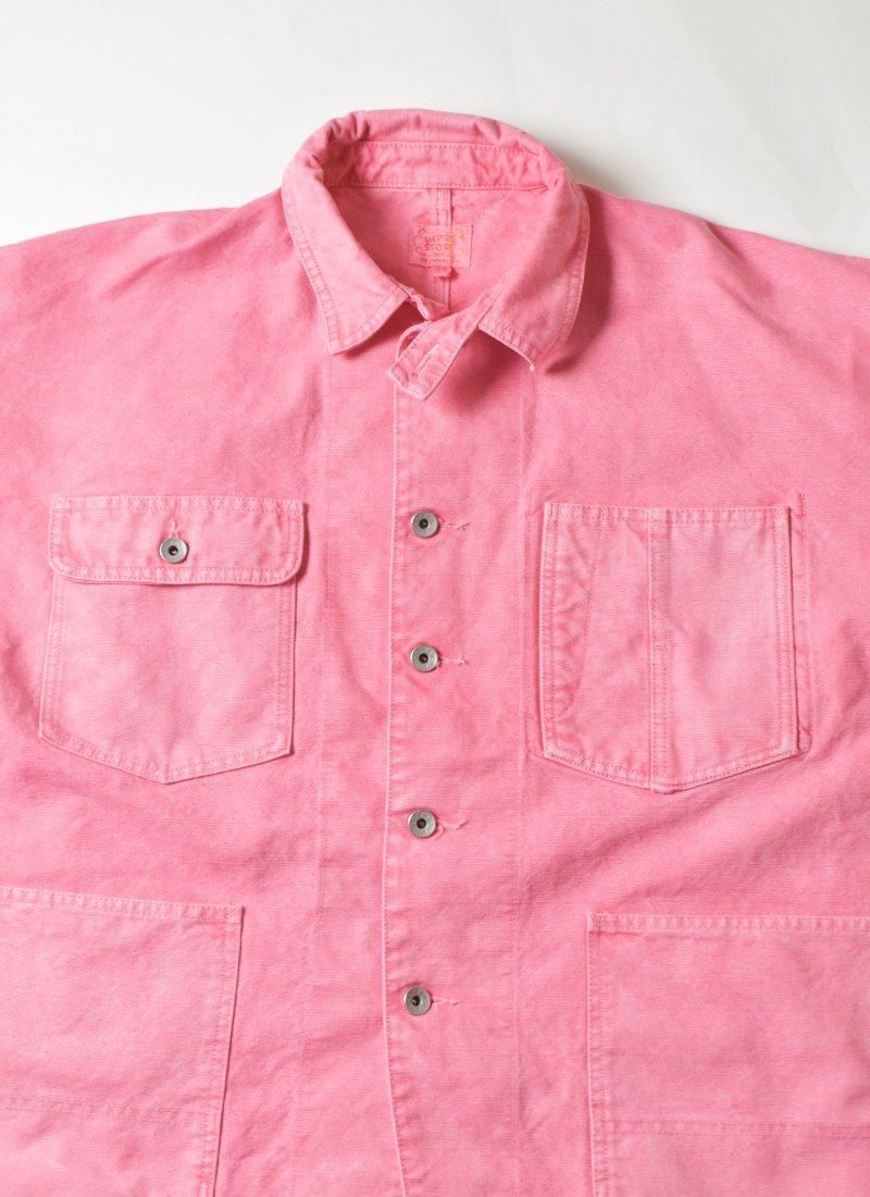 IMPRESTORE Denim Coverallをピンク色に染めたTWOKNOP別注カラーになります。