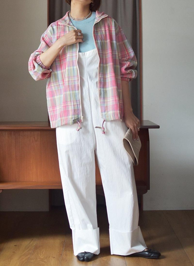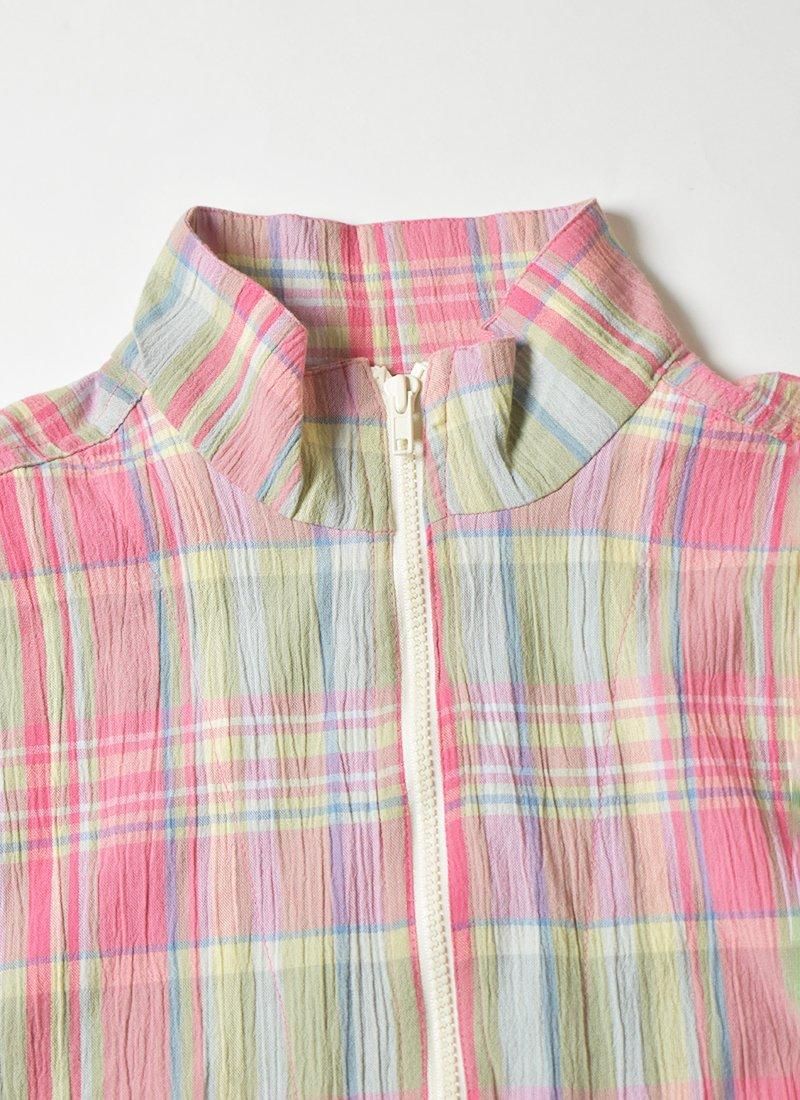 淡いピンクベースが可愛いマドラスチェックジャケット。