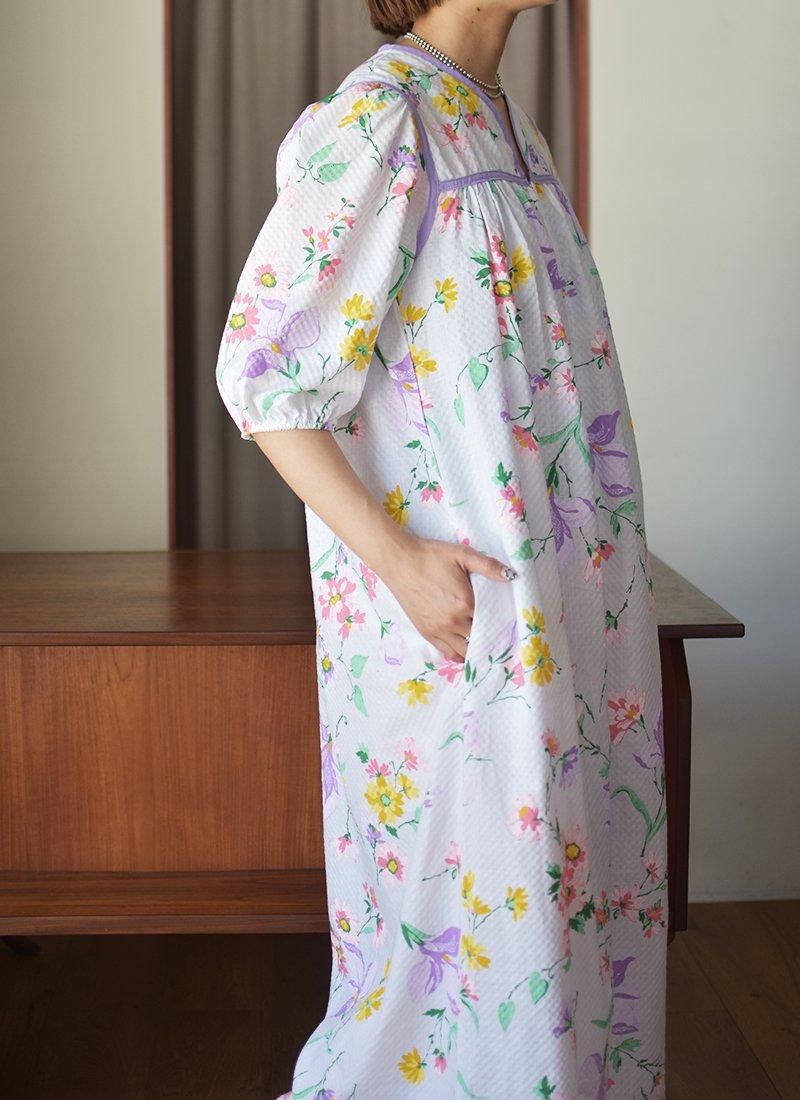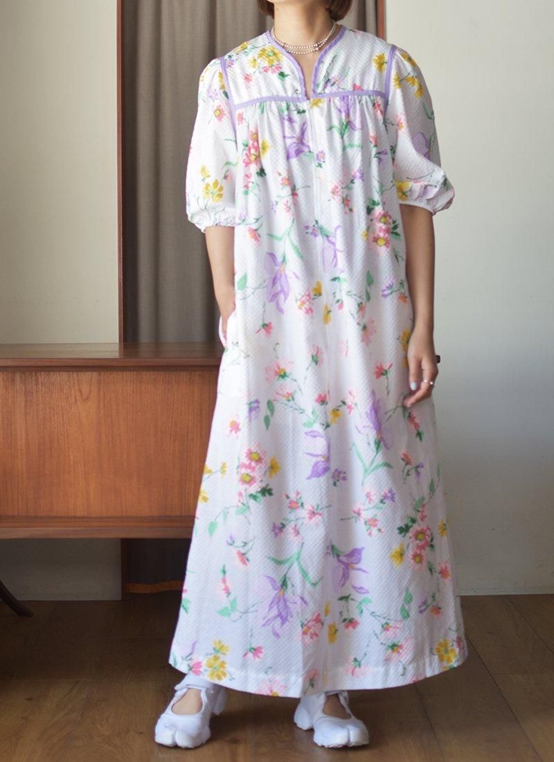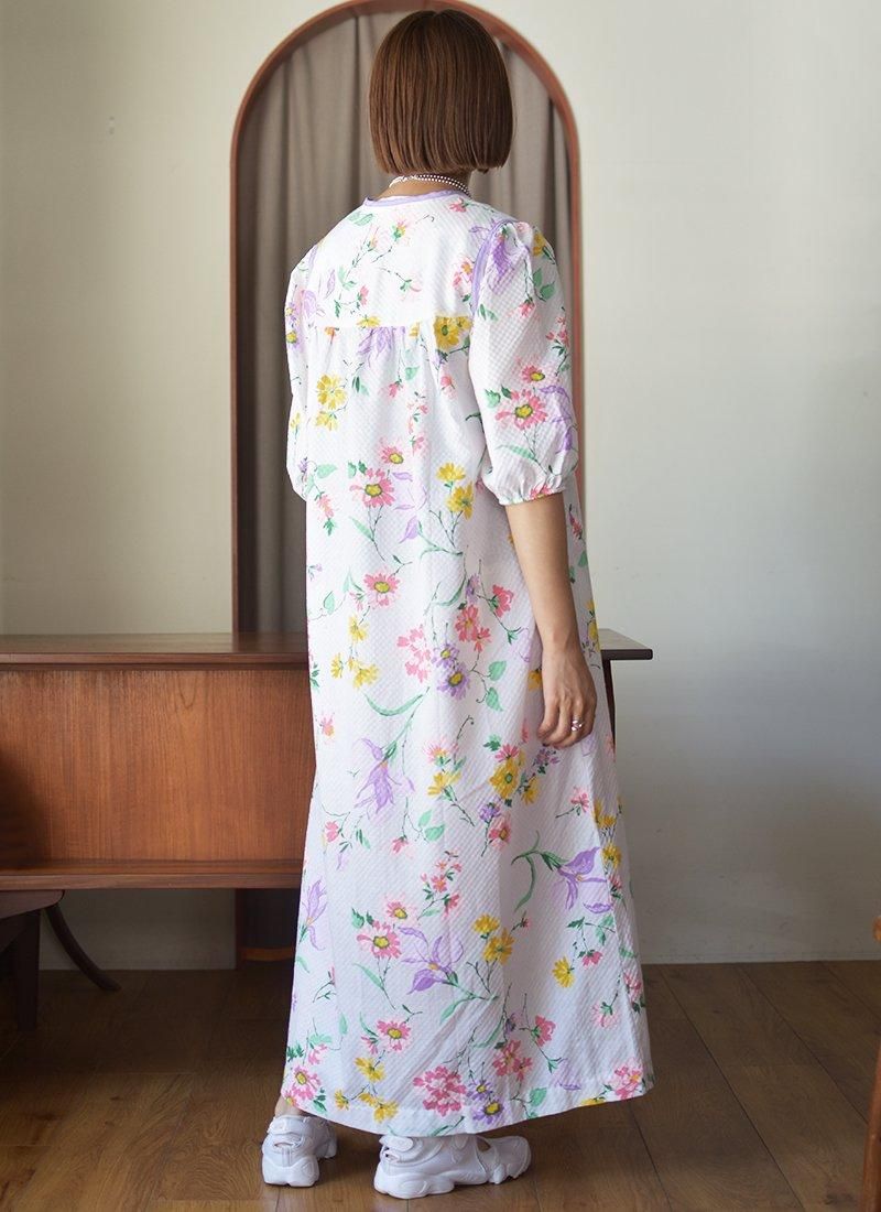 色鮮やかな花柄が素敵な80年代頃のロングドレス。