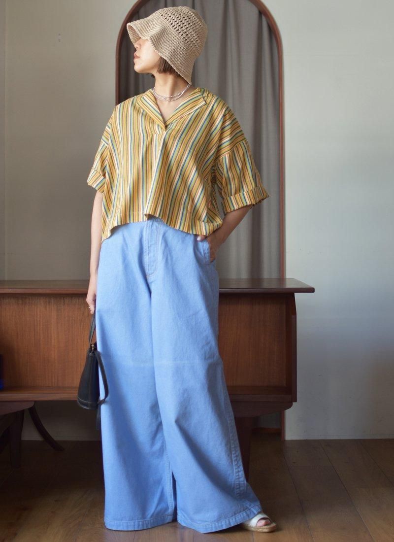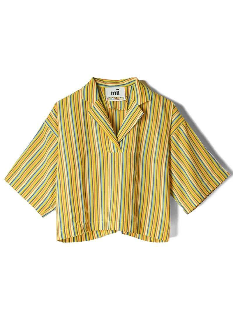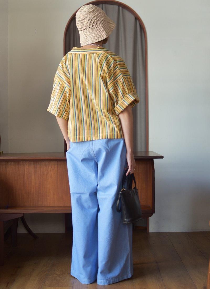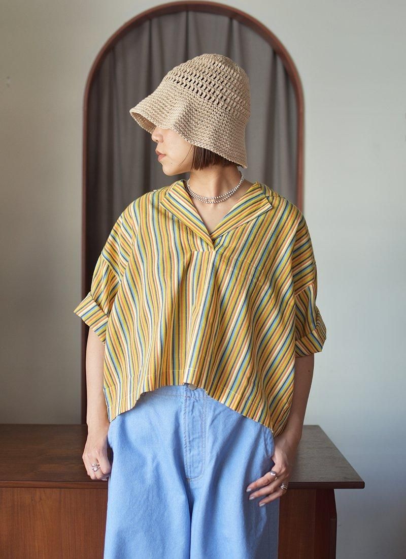 オリジナルテキスタイルのストライプ柄が素敵なブラウスになります。