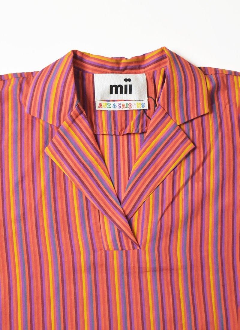 インド人の Bapan Dutta とフランス人の Lucie Bourreau によるスカーフとストールのブランド。ブランド名は"made in india"の頭文字から取られ、2つの「I」は、2つの国の出会い、2人のデザイナーの出会い、そしてあなたと I (Mii)との貴重な出会いを表している。デザインはパリで行われ、織りやプリント、刺繍などの制作はインドのコルタカにてすべて手作業にて行われており、世界的に有名なテキスタイルの伝統技術をもつ2つの国の特徴を生かしながら、新しいクリエイションを生み続けています。