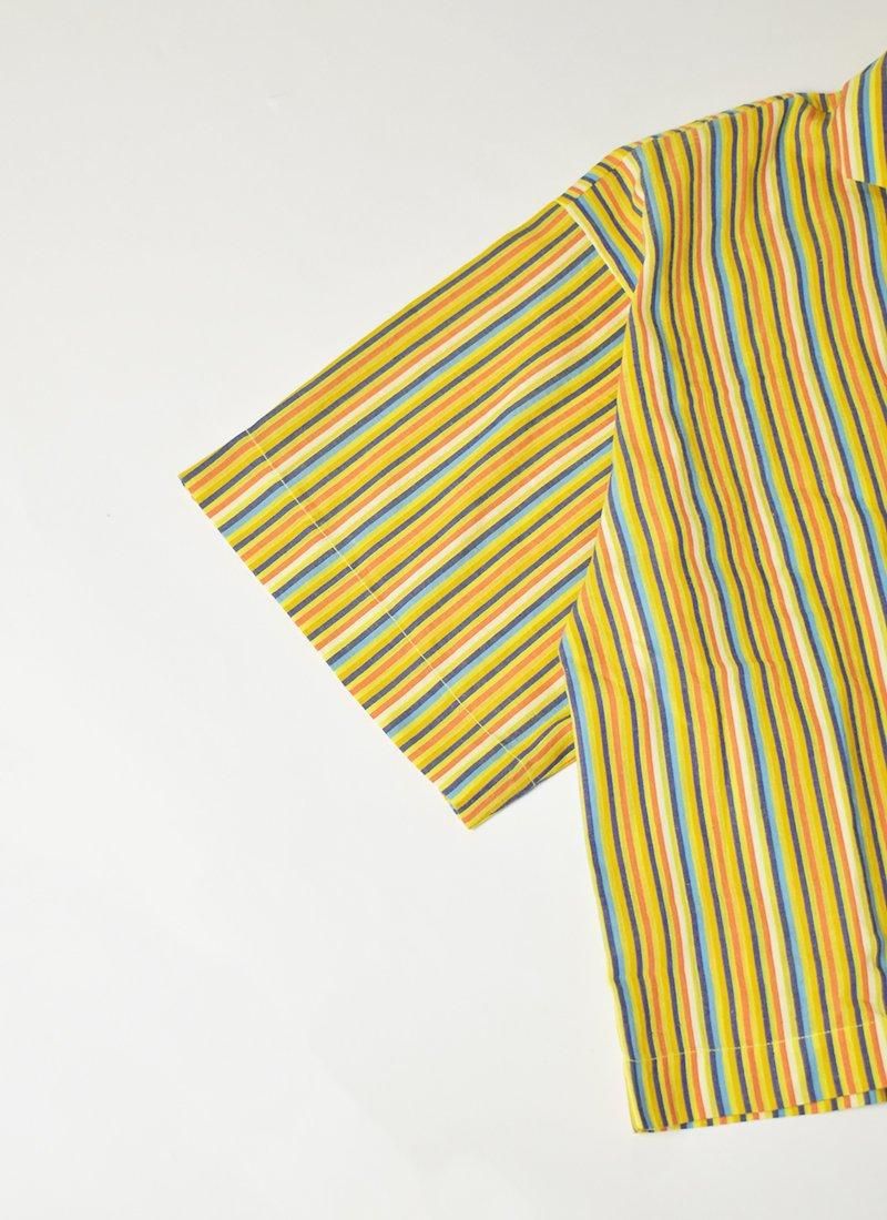 手織りの生地に鮮やかで明るいカラーが目を引く一枚です。