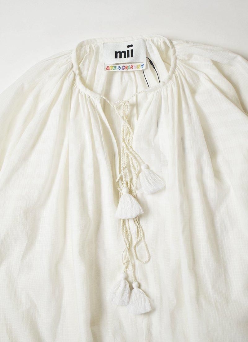インド人の Bapan Dutta とフランス人の Lucie Bourreau によるスカーフとストールのブランド。ブランド名は"made in india"の頭文字から取られ、2つの「I」は、2つの国の出会い、2人のデザイナーの出会い、そしてあなたと I (Mii)との貴重な出会いを表している。デザインはパリで行われ、織りやプリント、刺繍などの制作はインドのコルタカにてすべて手作業にて行われており、世界的に有名なテキスタイルの伝統技術をもつ2つの国の特徴を生かしながら、新しいクリエイションを生み続けています。