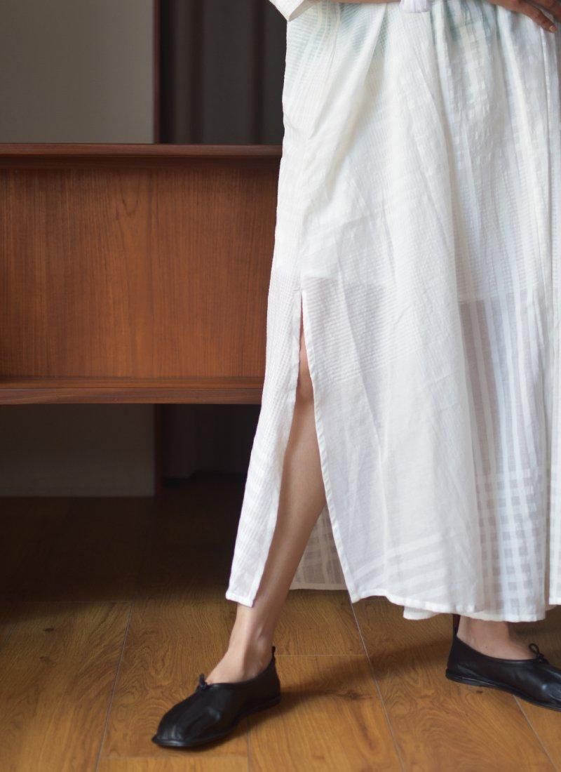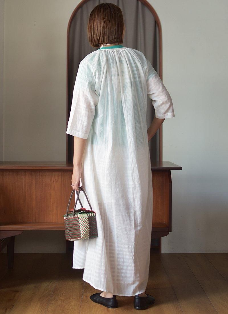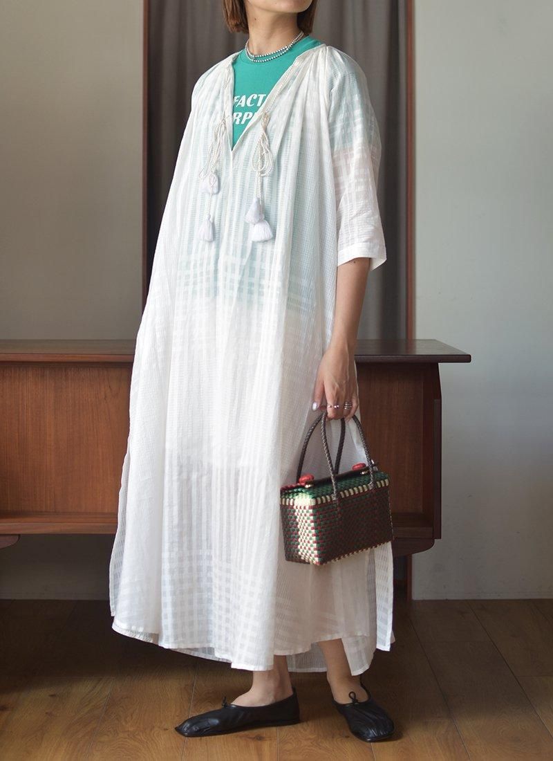 オリジナルテキスタイルの細かなチェック柄が素敵なロングドレスになります。