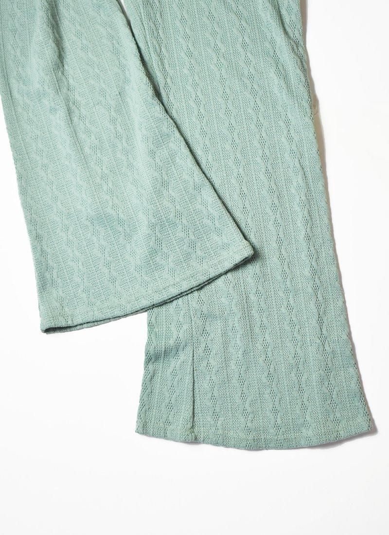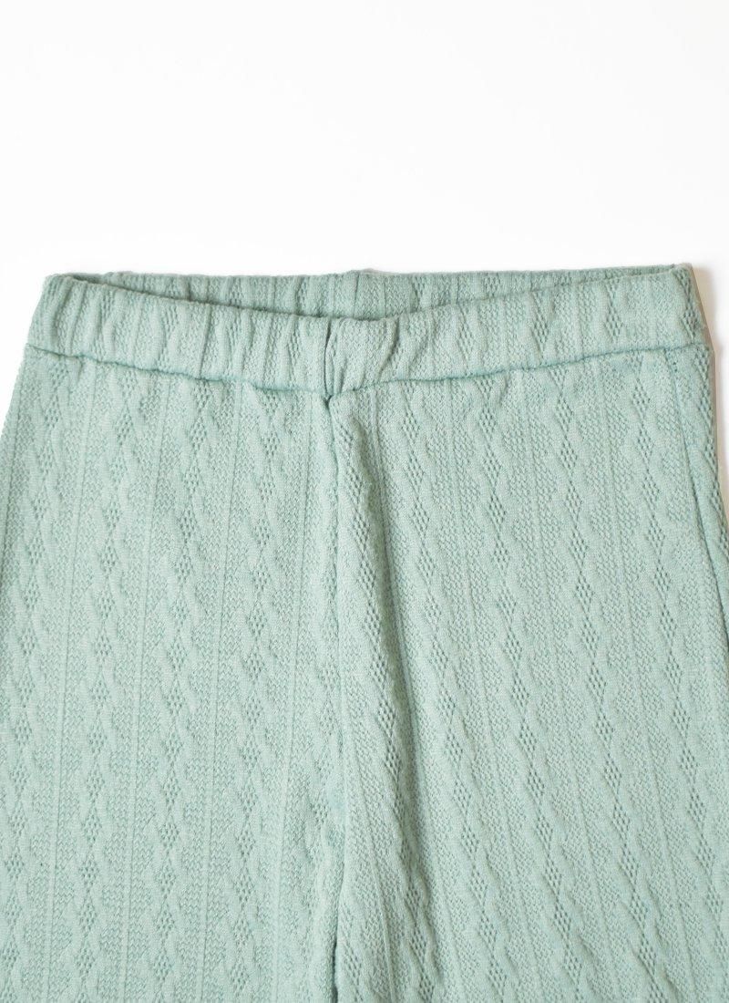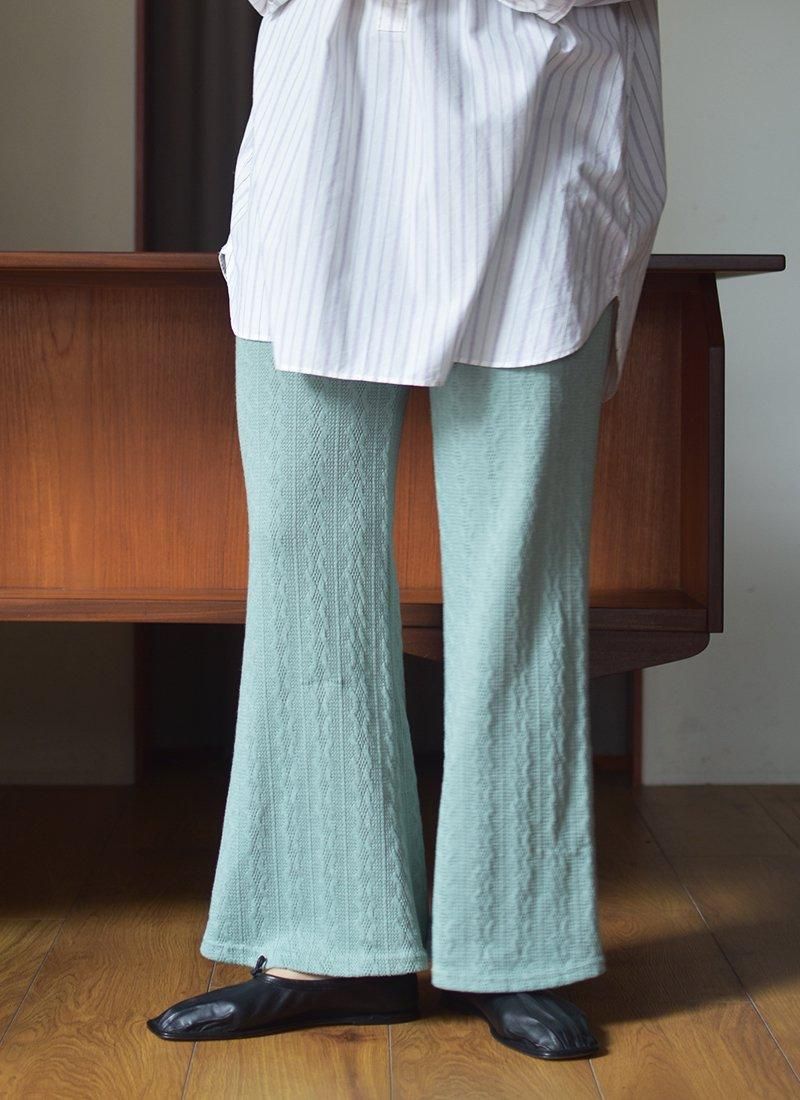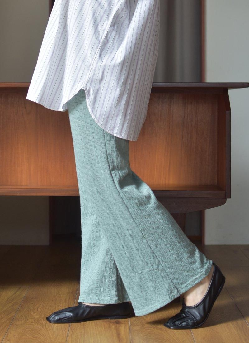 フレアシルエットでウエストゴムの入ったイージーな履き心地。