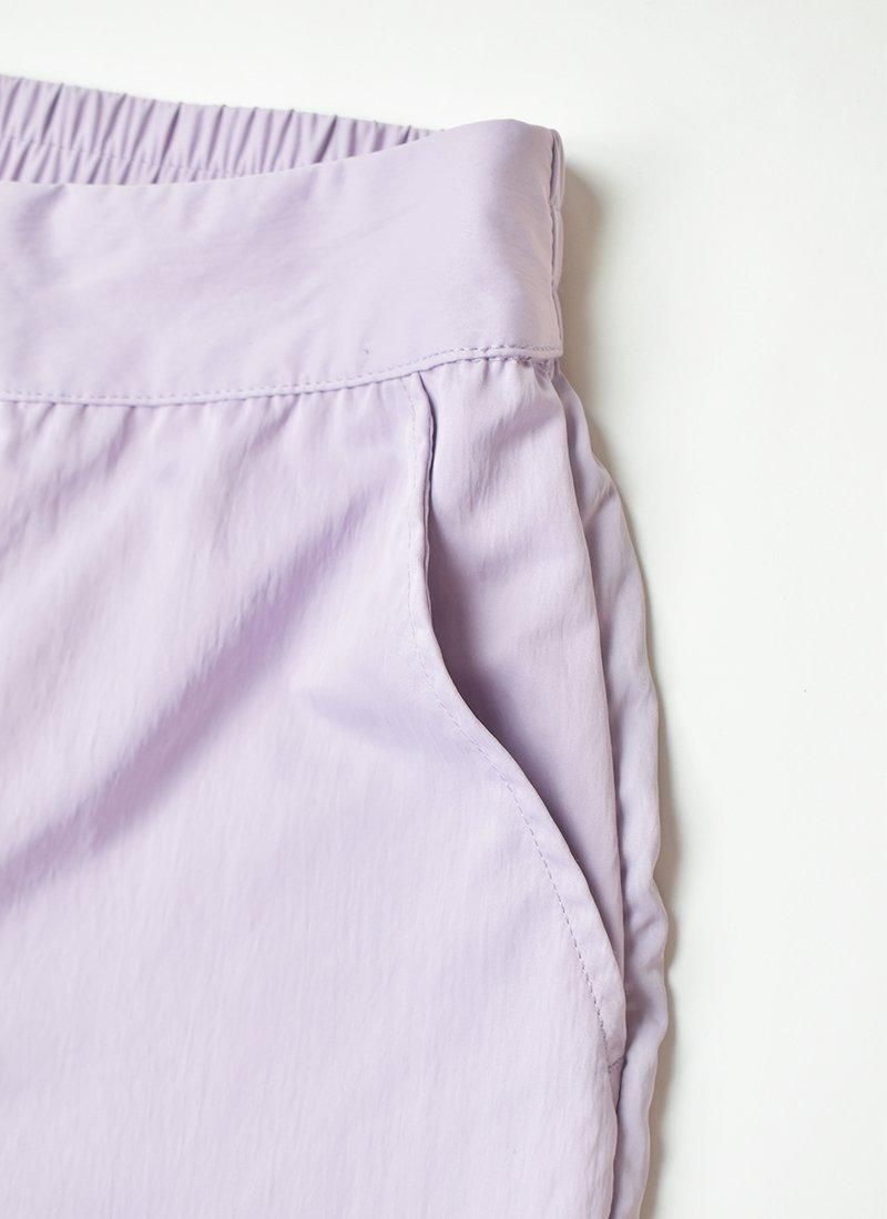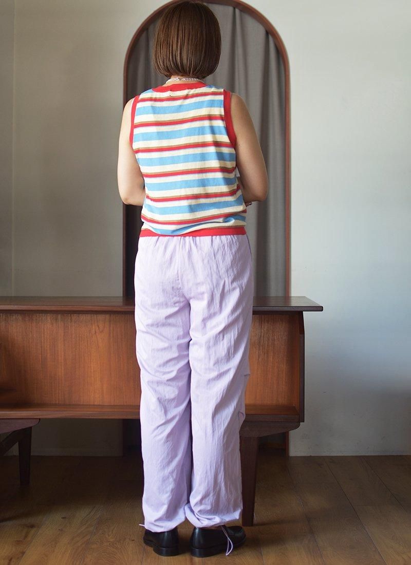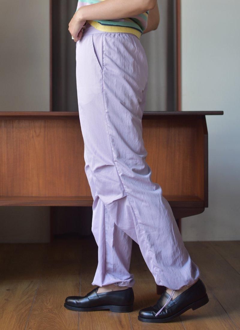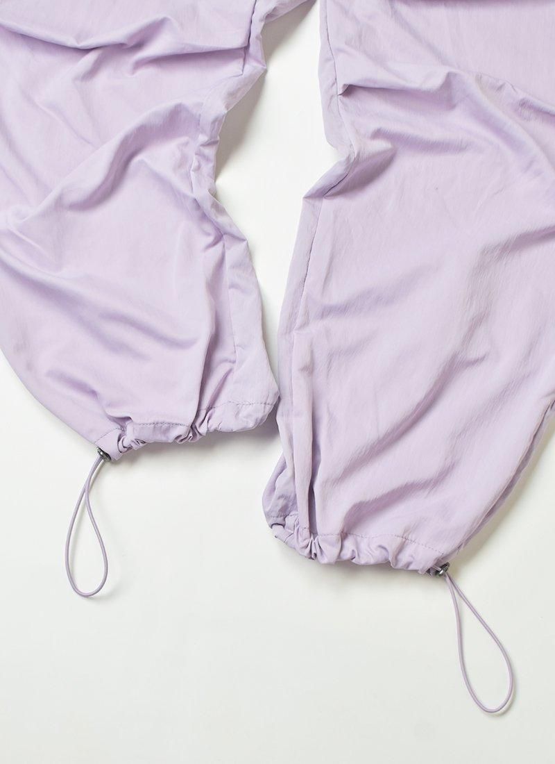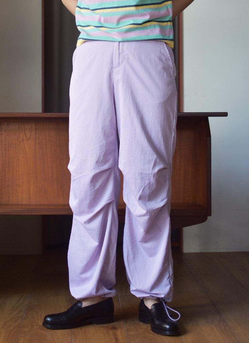 淡目なパープルカラーが映えるナイロンカーゴパンツ。