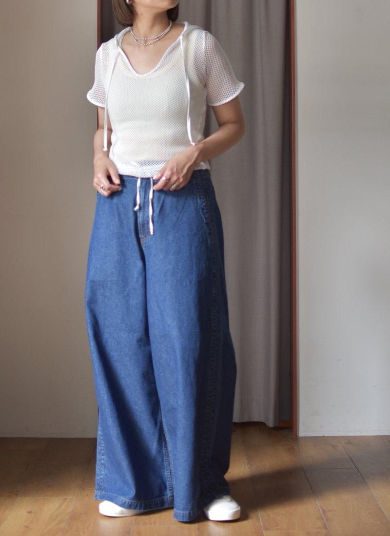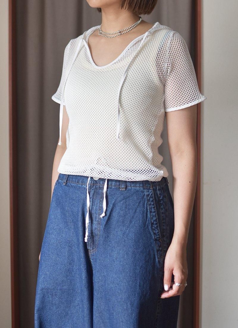 メッシュ地なのでTシャツやノースリーブなどをレイヤードするのもオススメ。