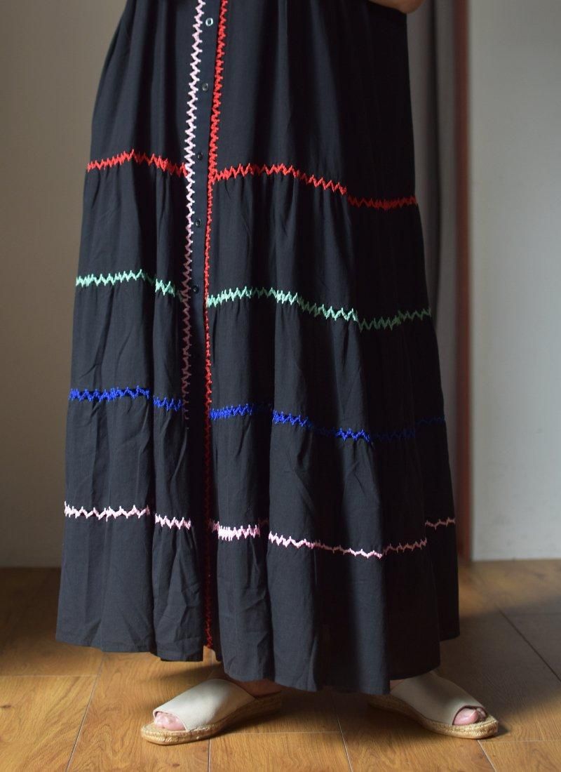 4色のクロシェ編みで繋がられたロングドレスになります。