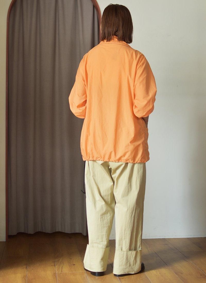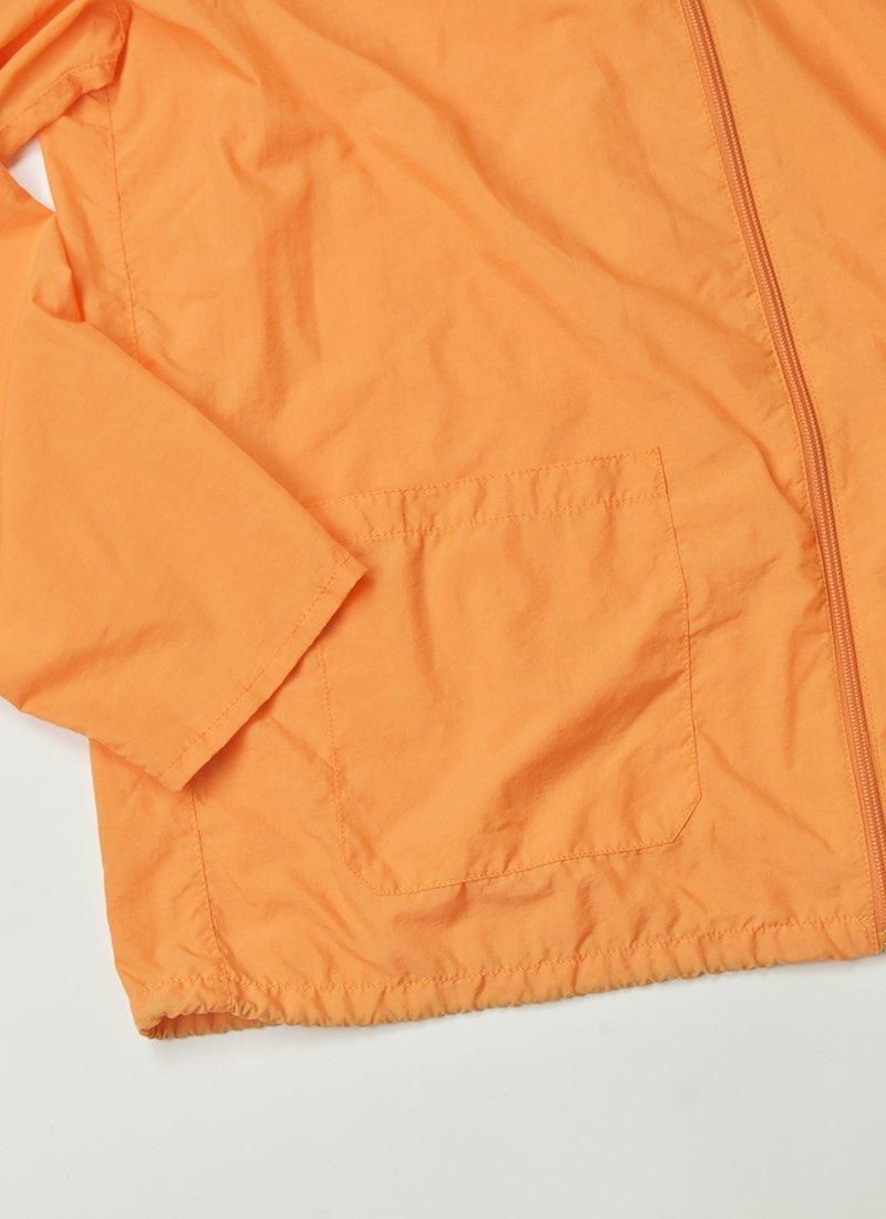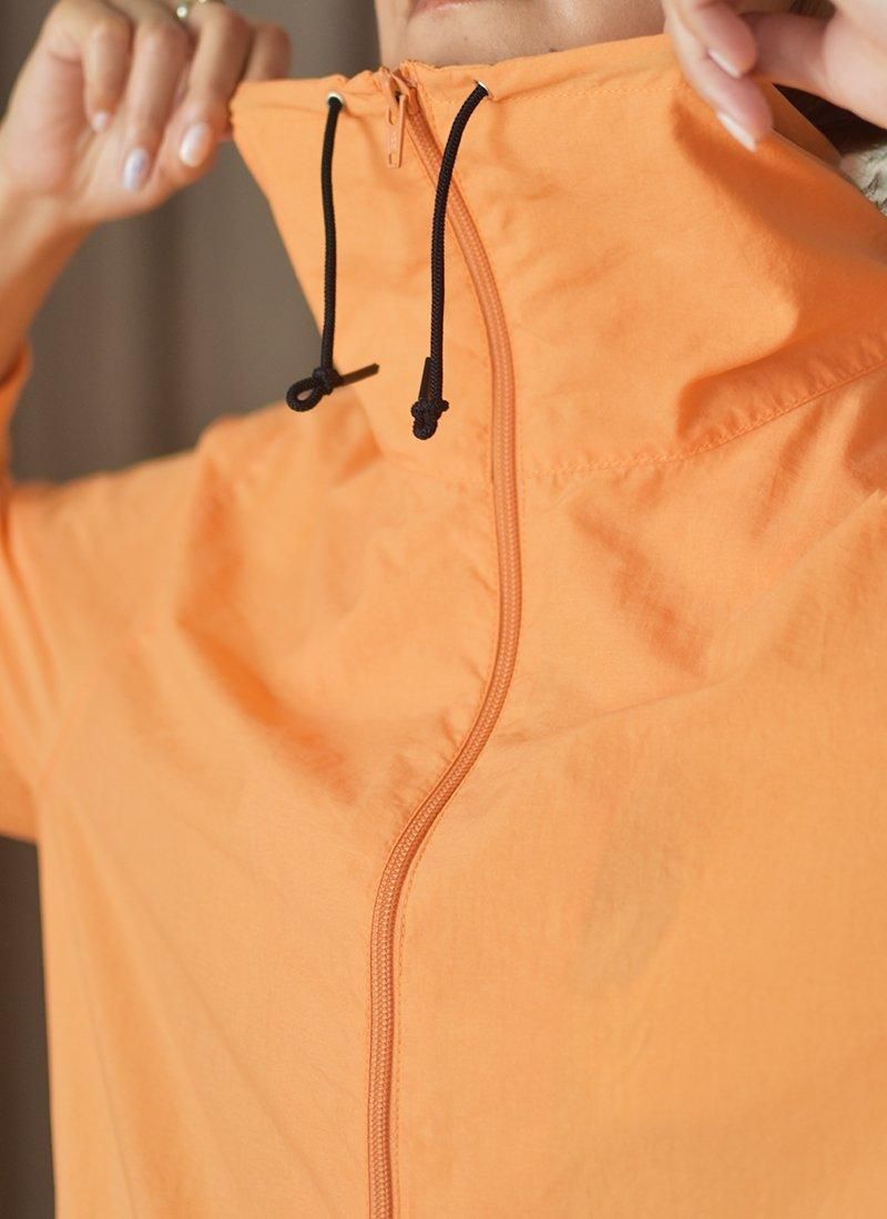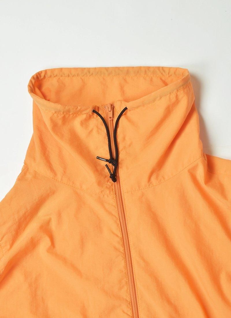 長めに作られたネックデザインが特徴のナイロンジャケット。