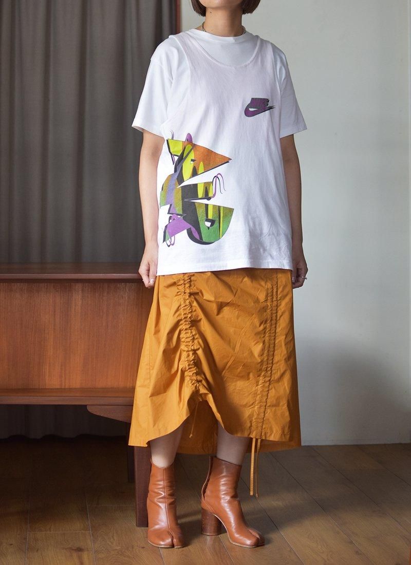 シンプルなトップス合わせでも個性的な着こなしが楽しめる一枚です。