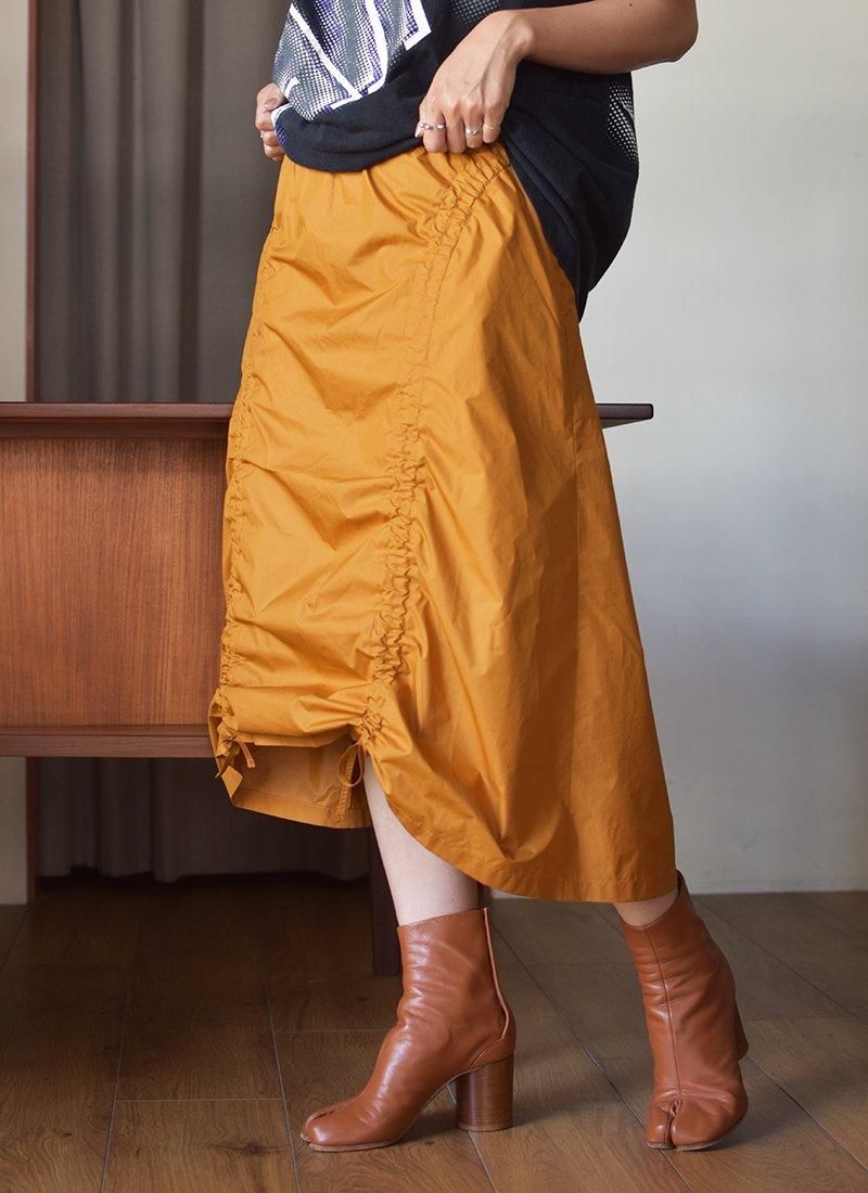 両サイドにコードが入っていて、裾の形を自由に調節可能。