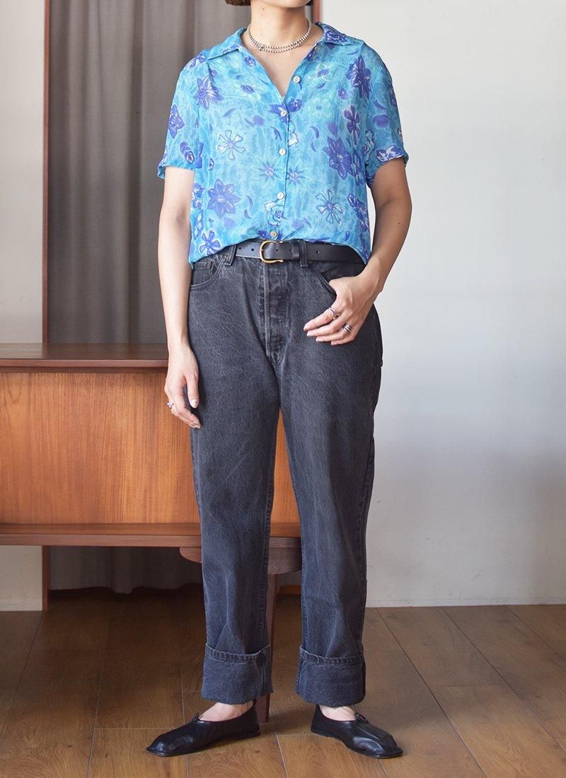 透け感のある花柄のデザインが素敵なブラウスになります。