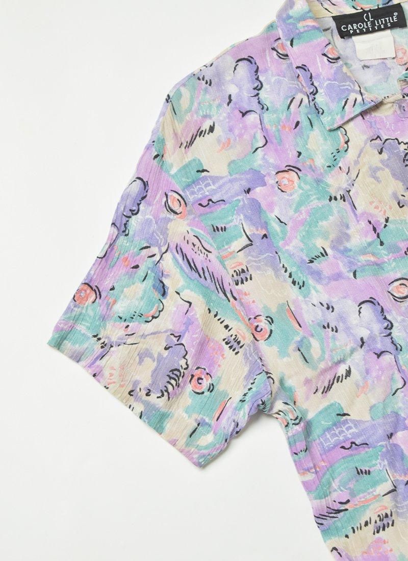 水彩画で描いた様なニュアンス柄が素敵なブラウス。