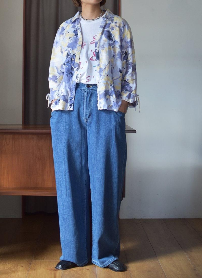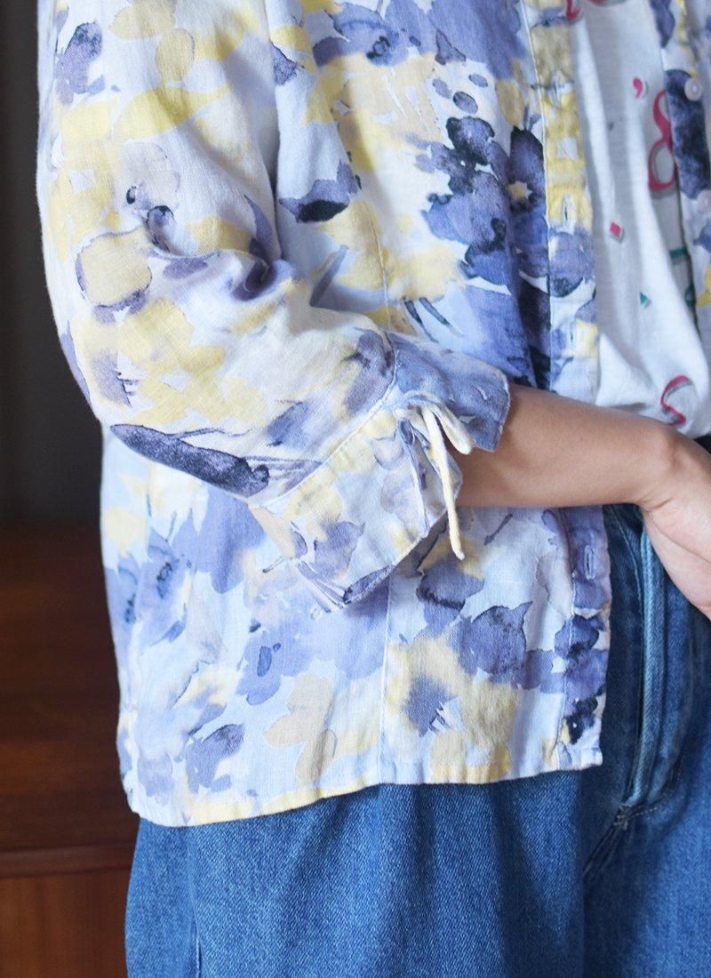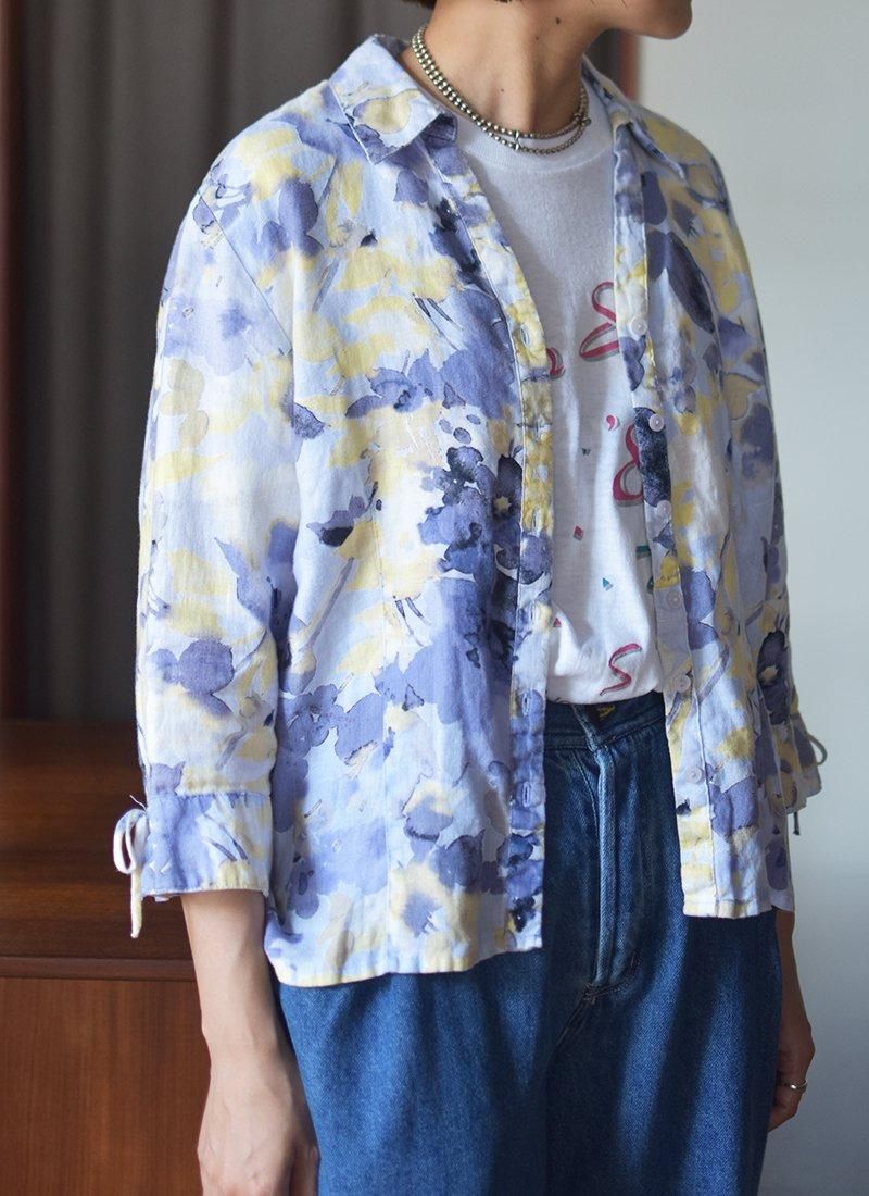 アンニュイな花柄が大人らしい印象のリネンブラウス。