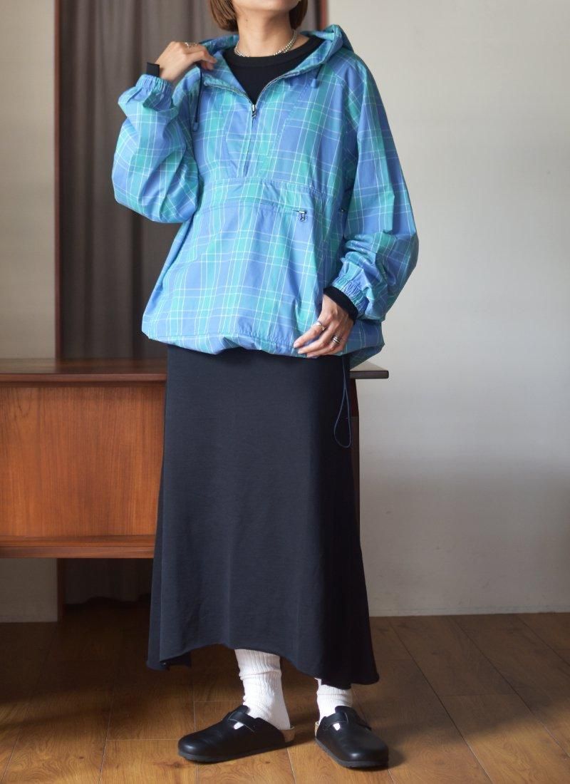 ブルーベースの淡いチェック柄が可愛いアノラック。