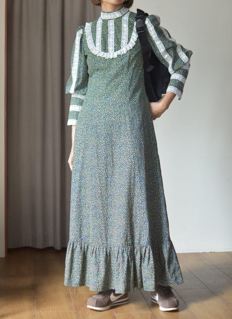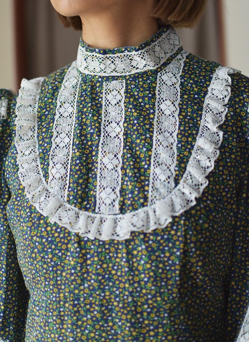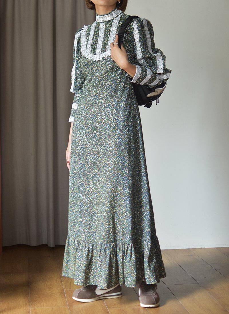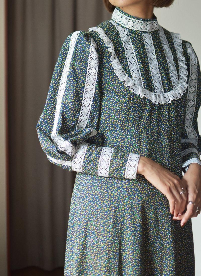 花柄ワンピース 首元〜裾まで作り手の拘りがふんだんに詰まった60年代のヴィンテージドレス。