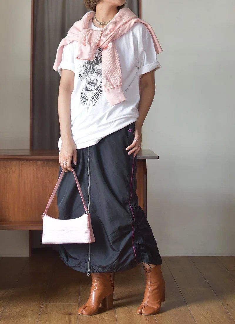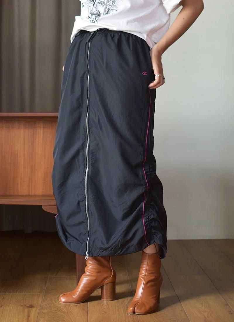 チャンピオンのトレーニングパンツをリメイクしたスカート。