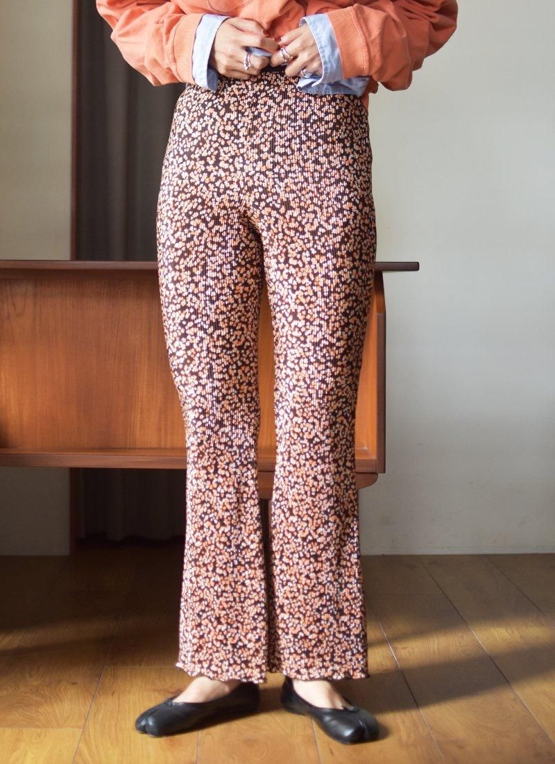 小花柄が可愛らしいポリエステルイージーパンツ。