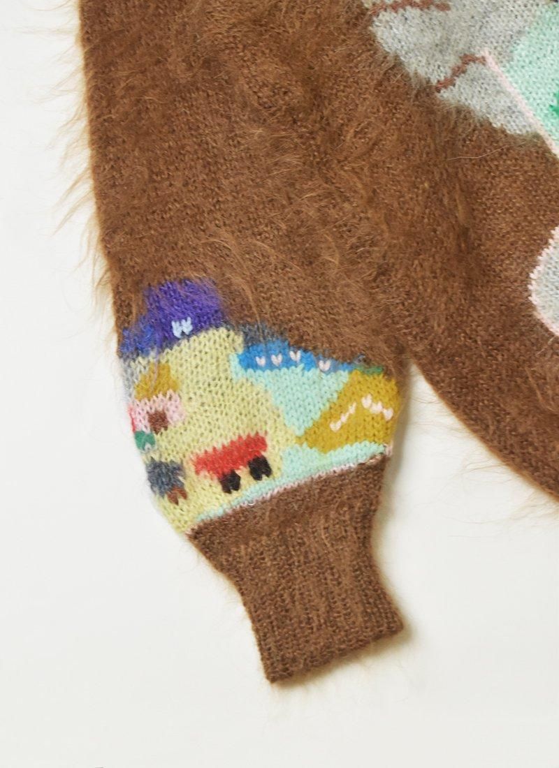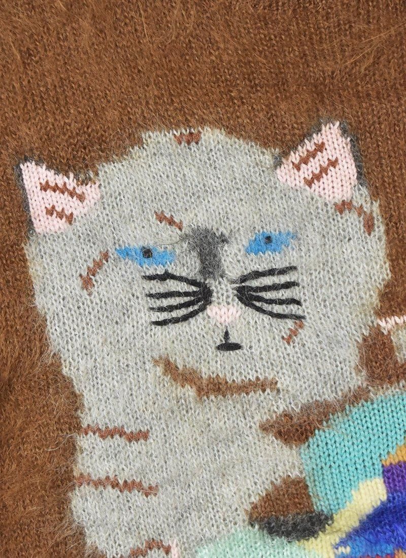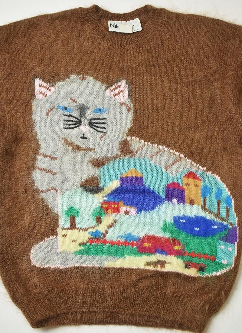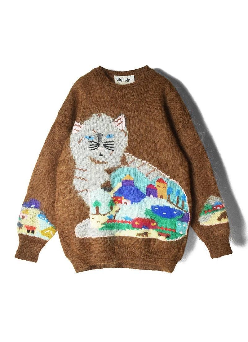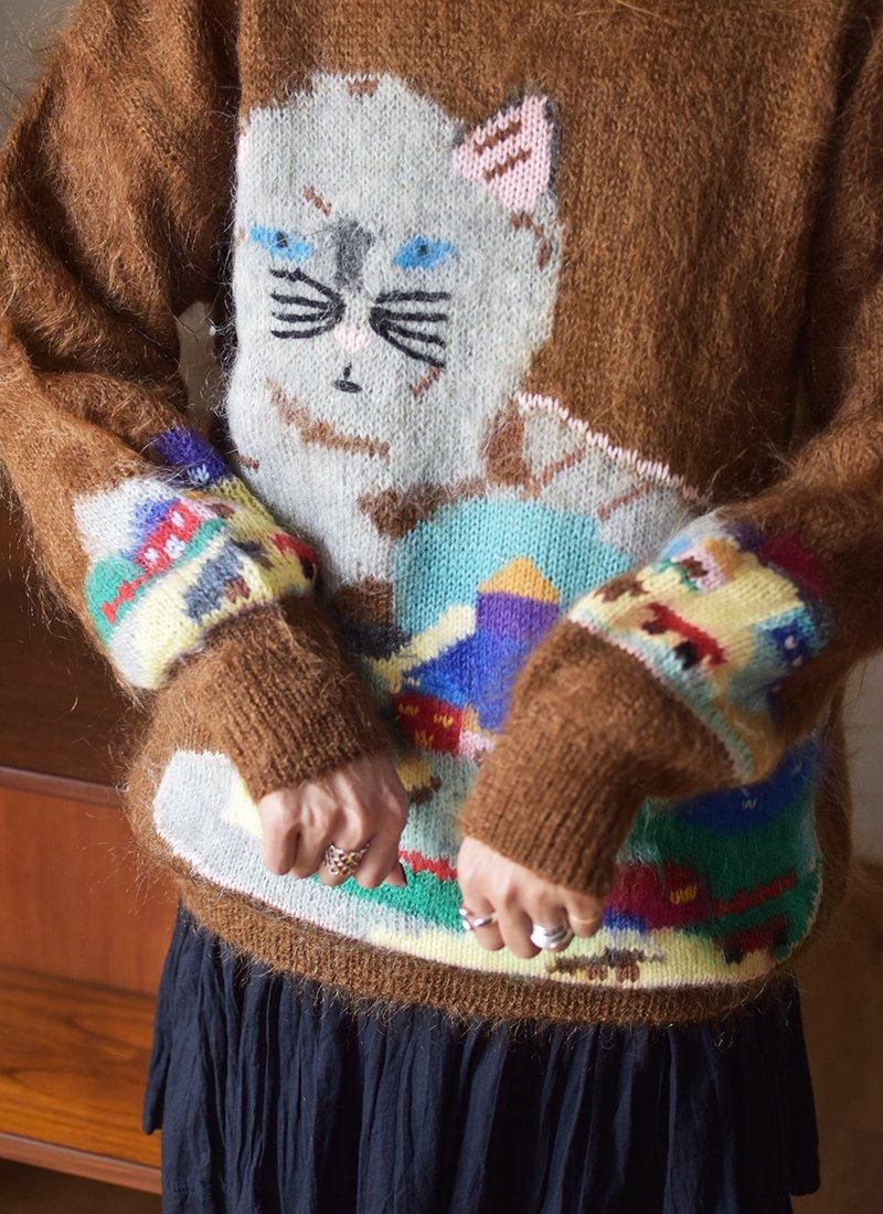 猫モチーフの風景柄が非常に可愛いイタリア製のモヘアニット。