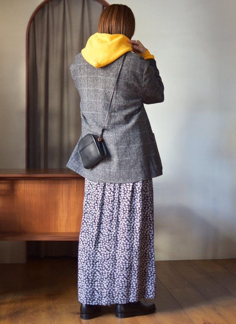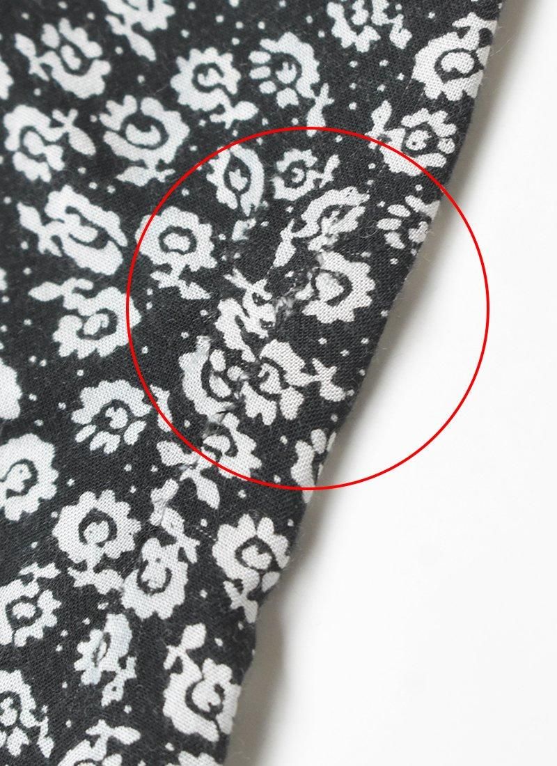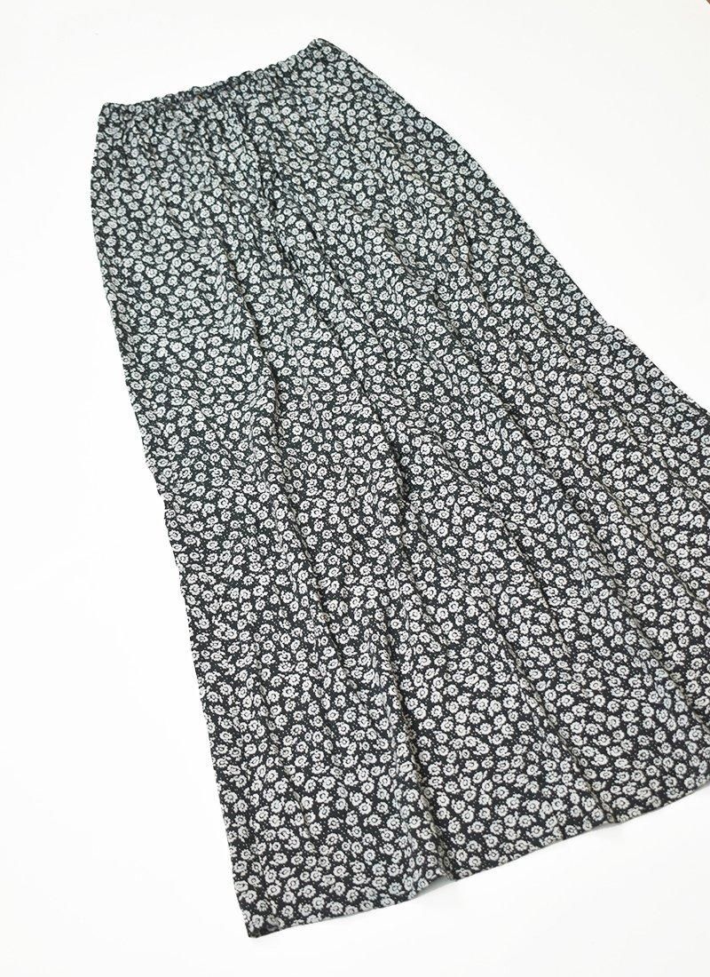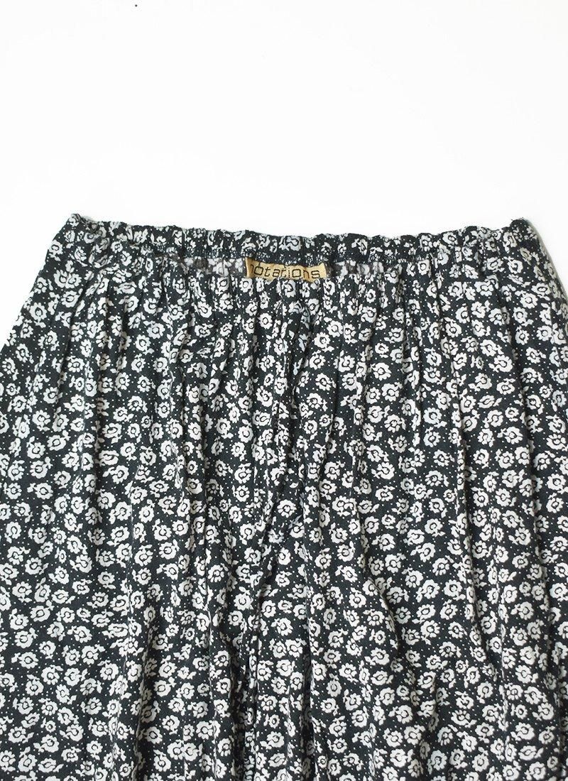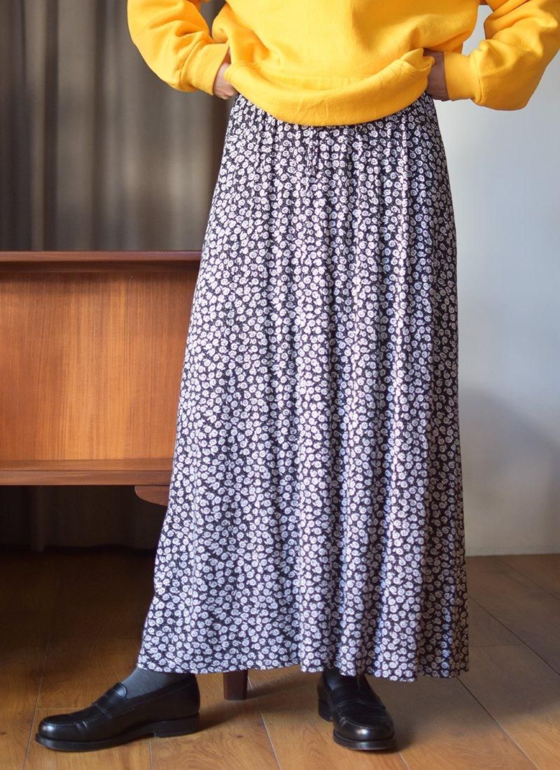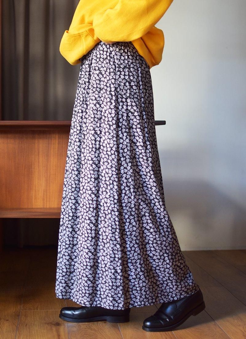 ウエストはゴム仕様で、ブラックベースの小花柄が万能な1着。