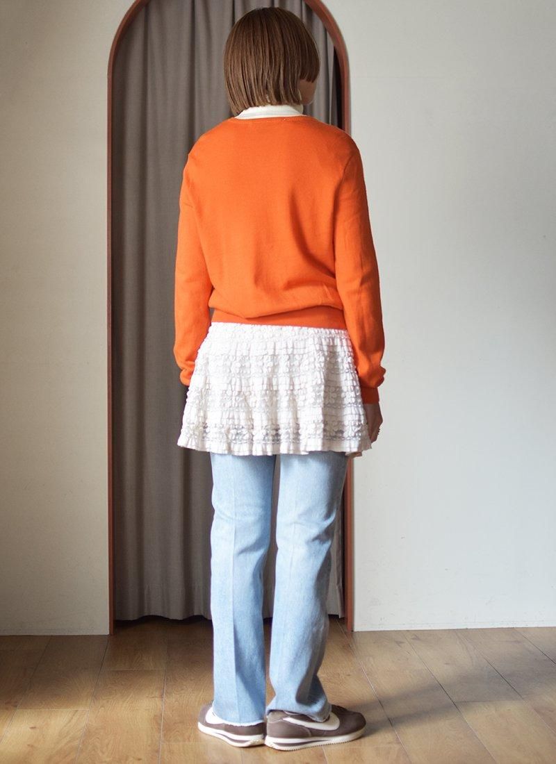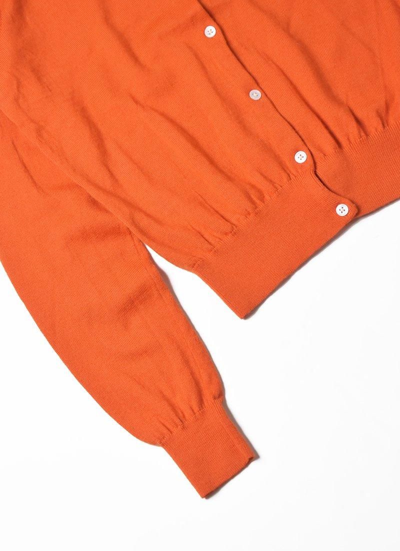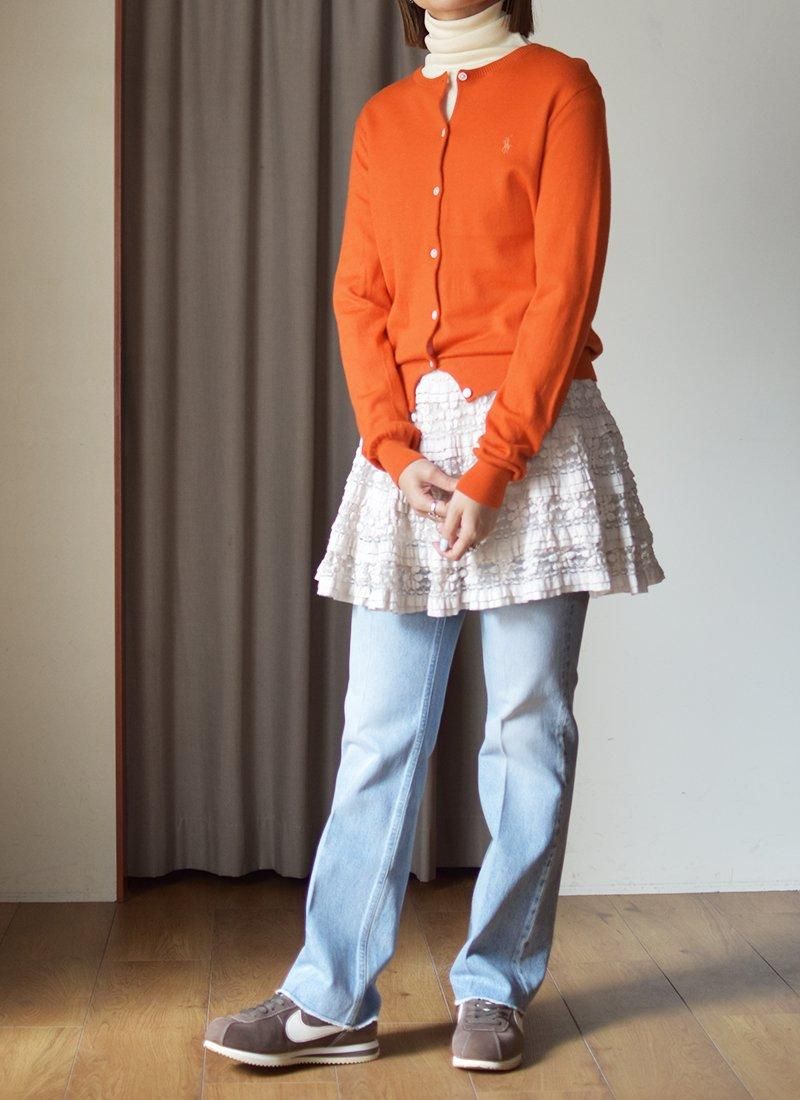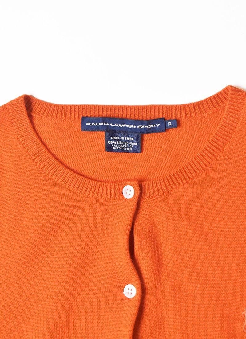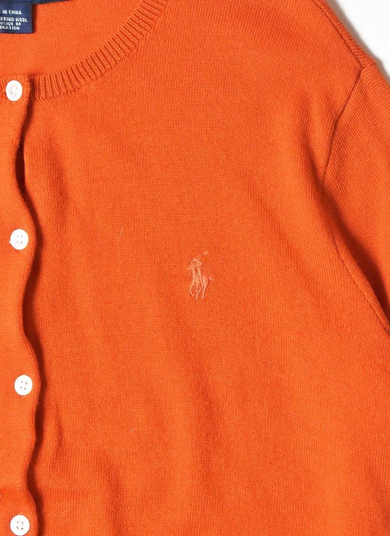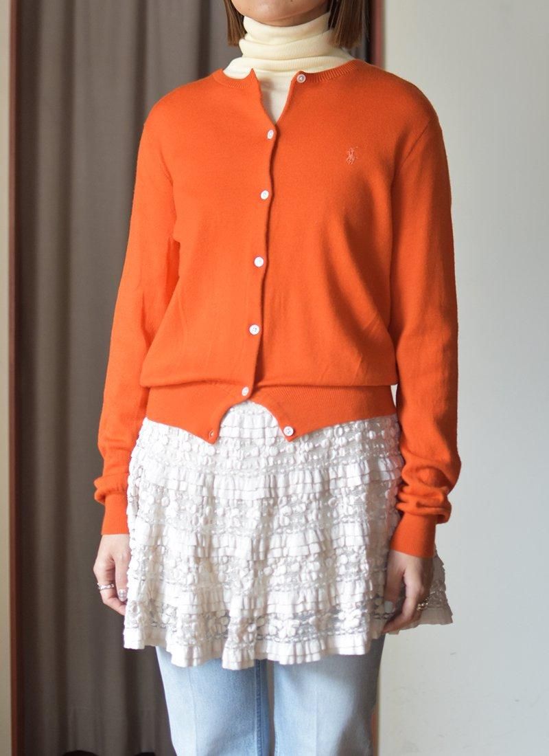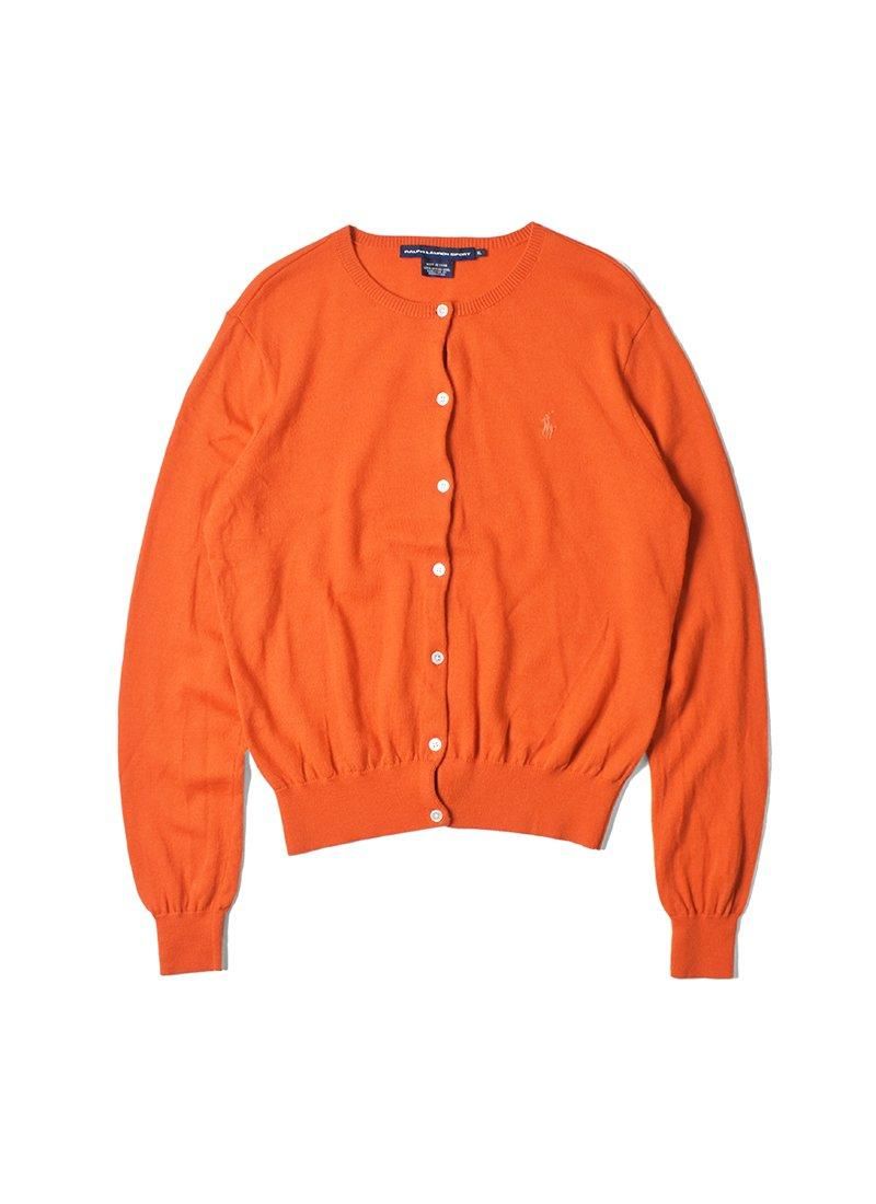 ビビットなオレンジがスタイルを引き締めてくれるラルフローレンのハイゲージニットカーディガン。