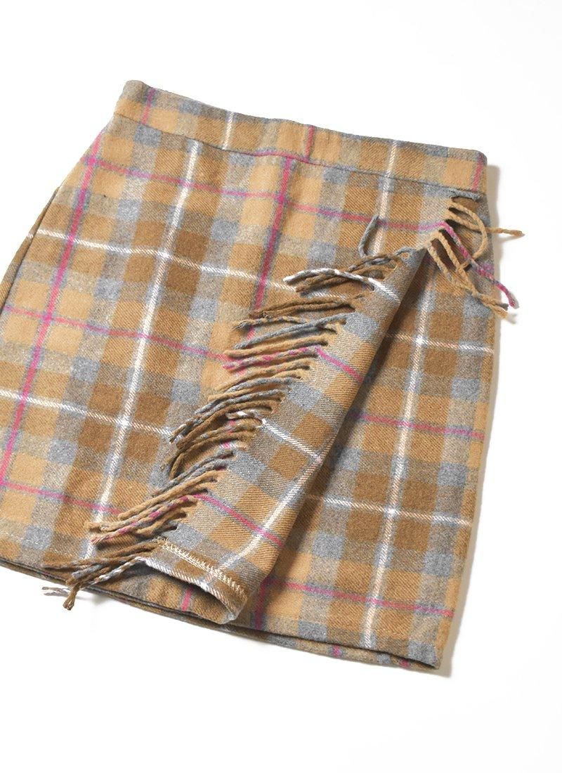 ラップ巻きの様なデザインが可愛いチェック柄のミニスカートです。