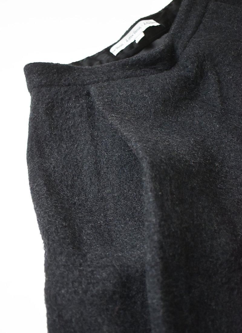地厚なウール素材で、立体感があり、厚手のスウェットやニットを合わせても生地負けせず使って頂けます。