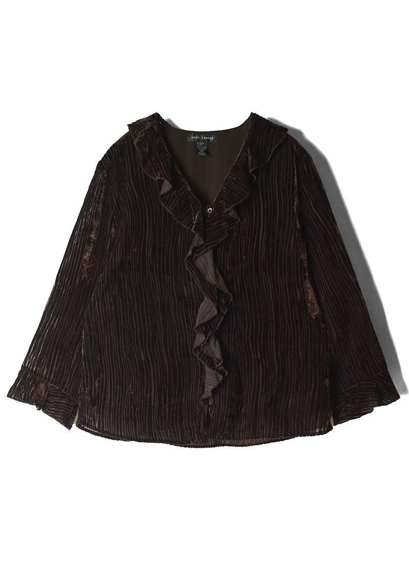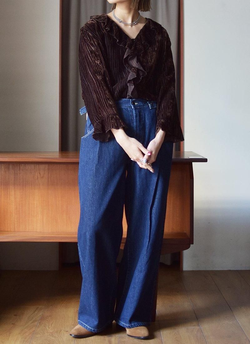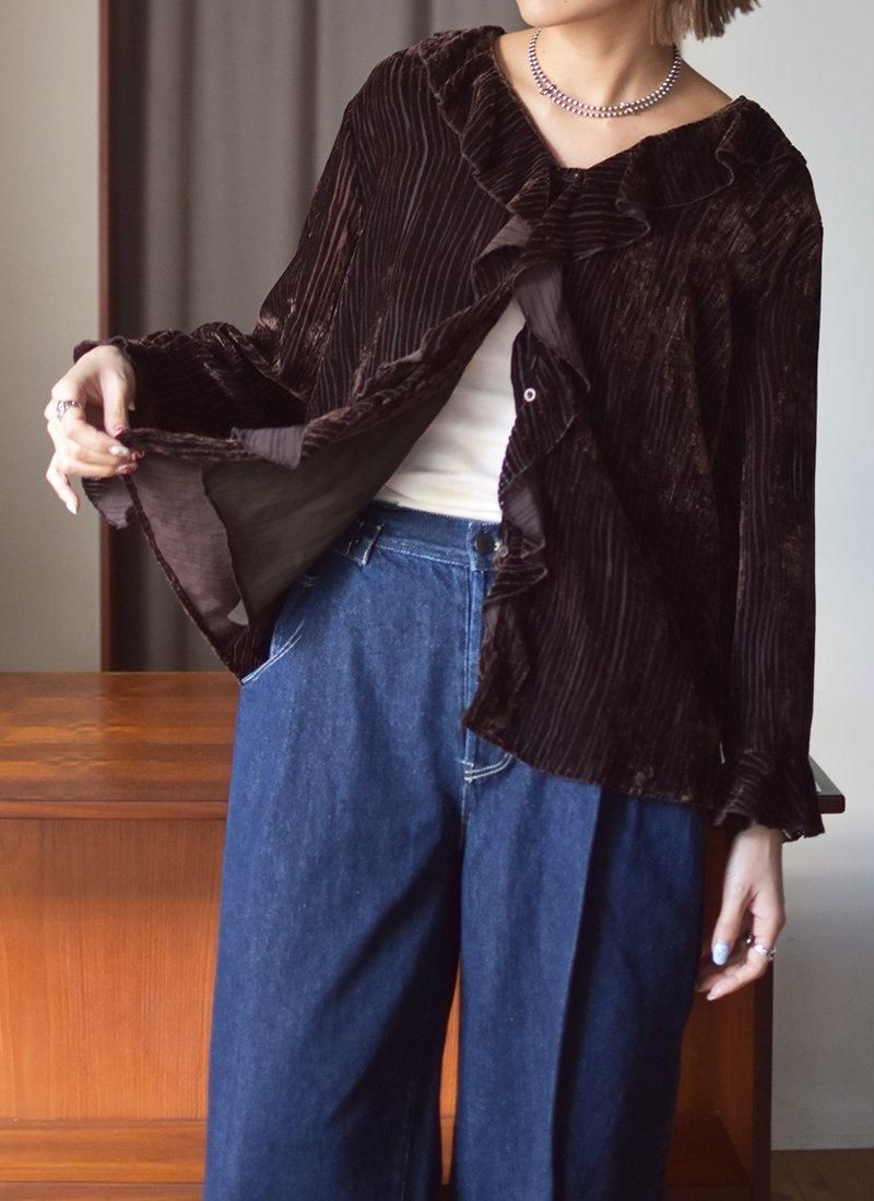 しっとりとしたベロアの生地感が上品な印象のブラウス。