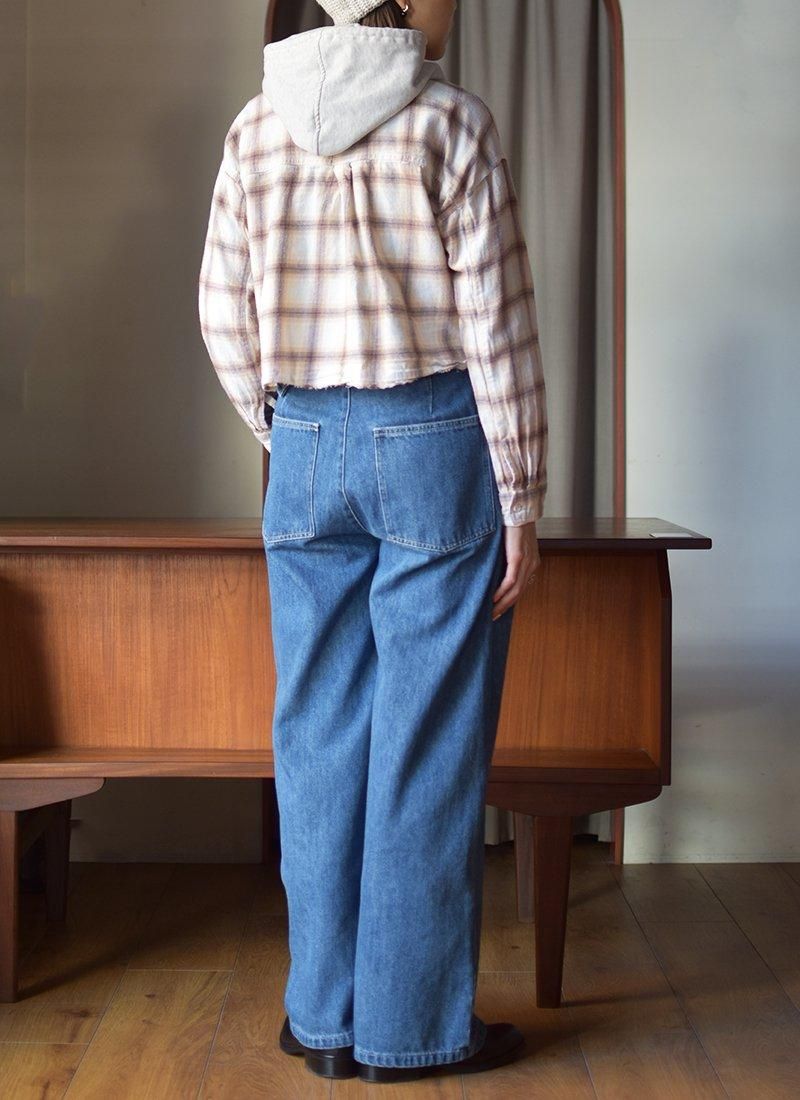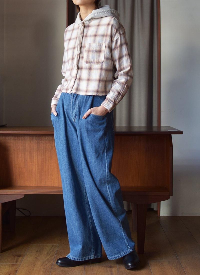 切りっぱなしのクロップド丈。(裾付近にステッチが入っているのでこれ以上ほつれることは無いと思います)