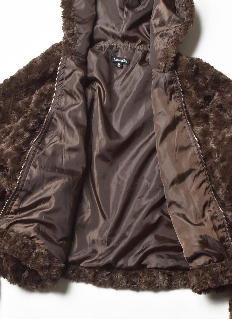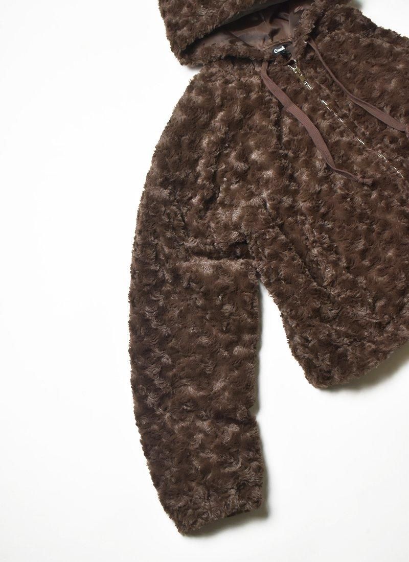 テディベアの様なブラウン色で、カジュアルなスタイルにも合わせやすいファージャケット。