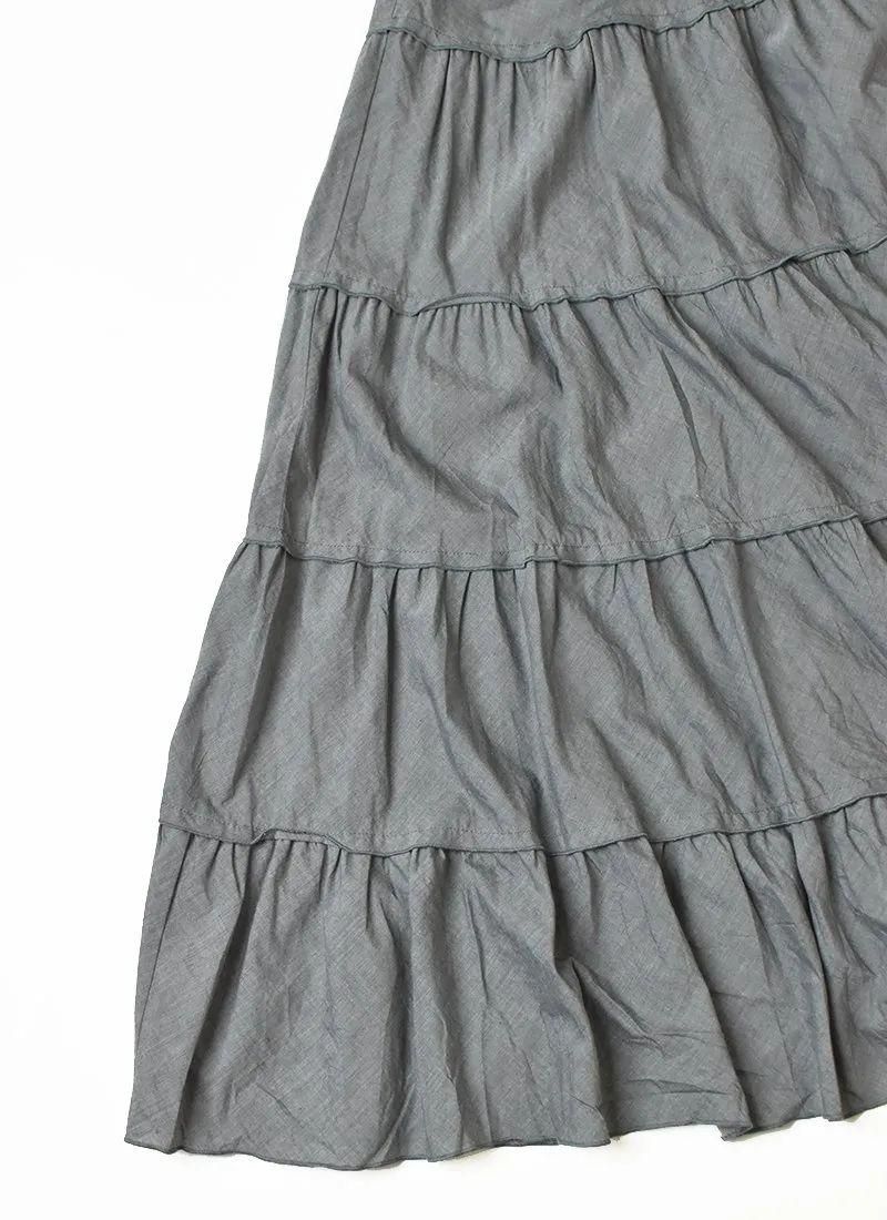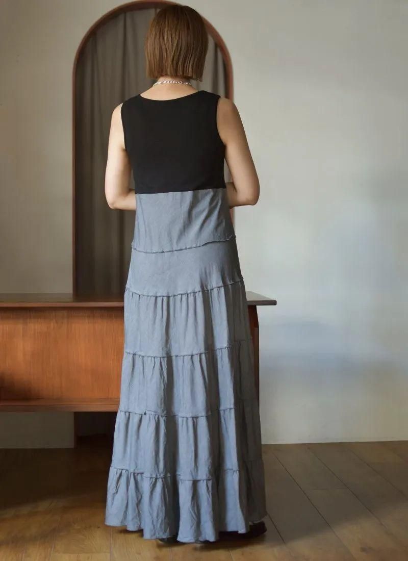スカート部分はブラックシャンブレーのティアードデザインになっています。