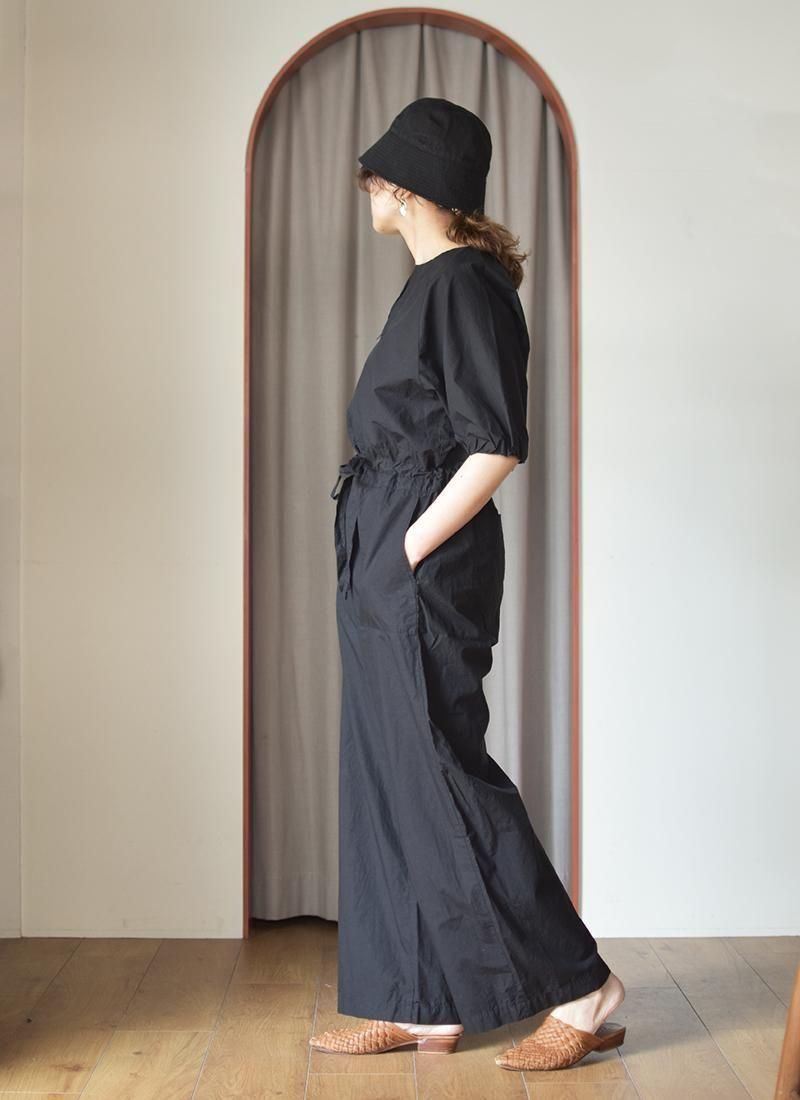 一枚で様になる、絶妙な光沢とサラッとした着心地のコットンリネンのオールインワン。