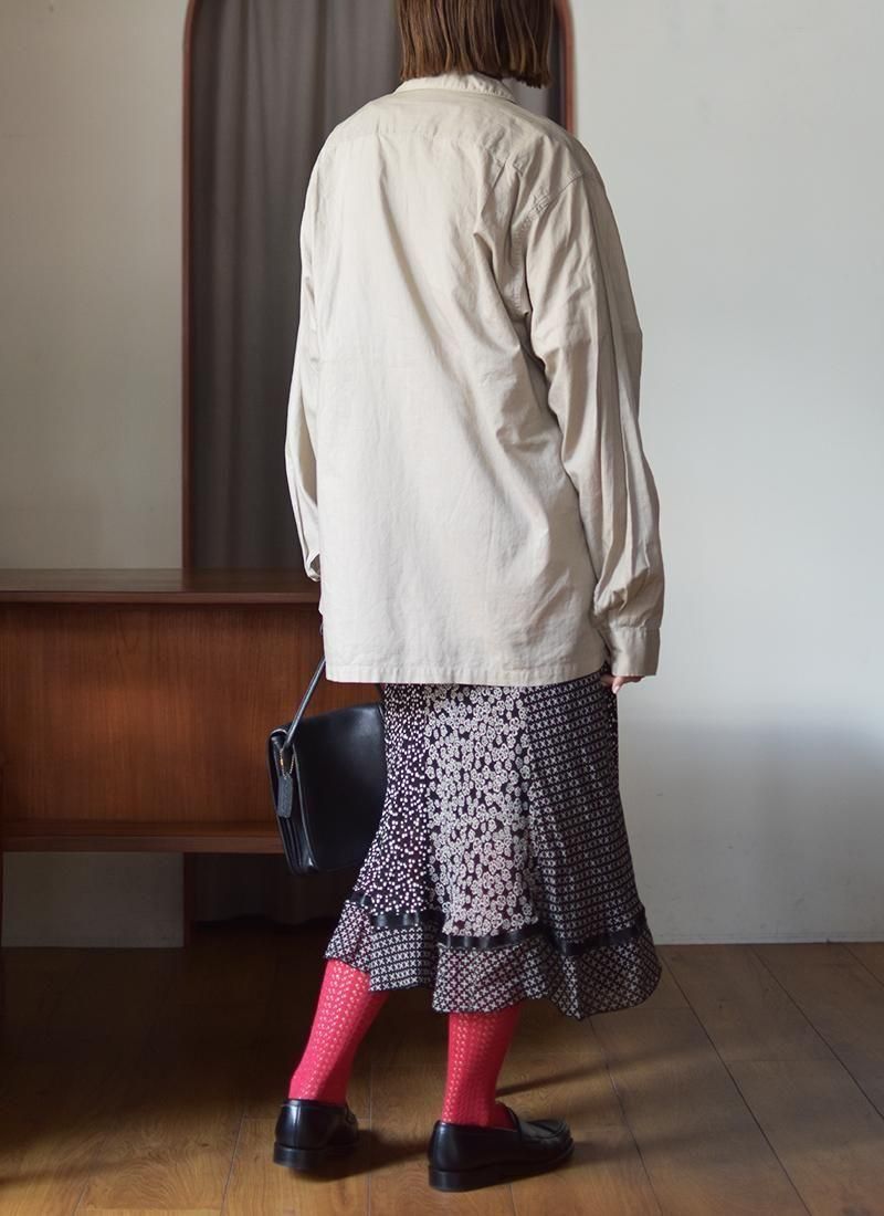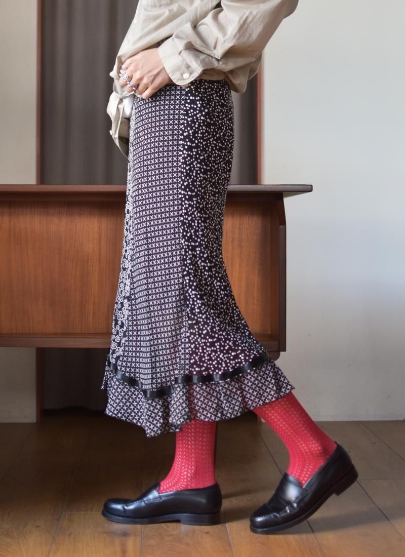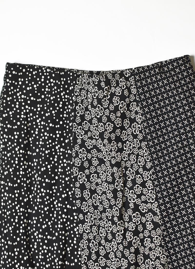 様々な柄の切り替えデザインが素敵なミディアム丈スカート。