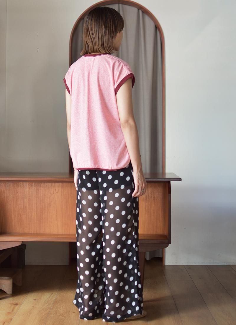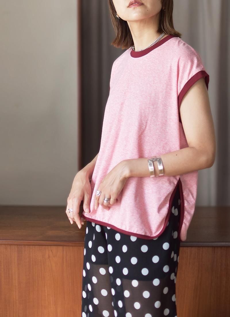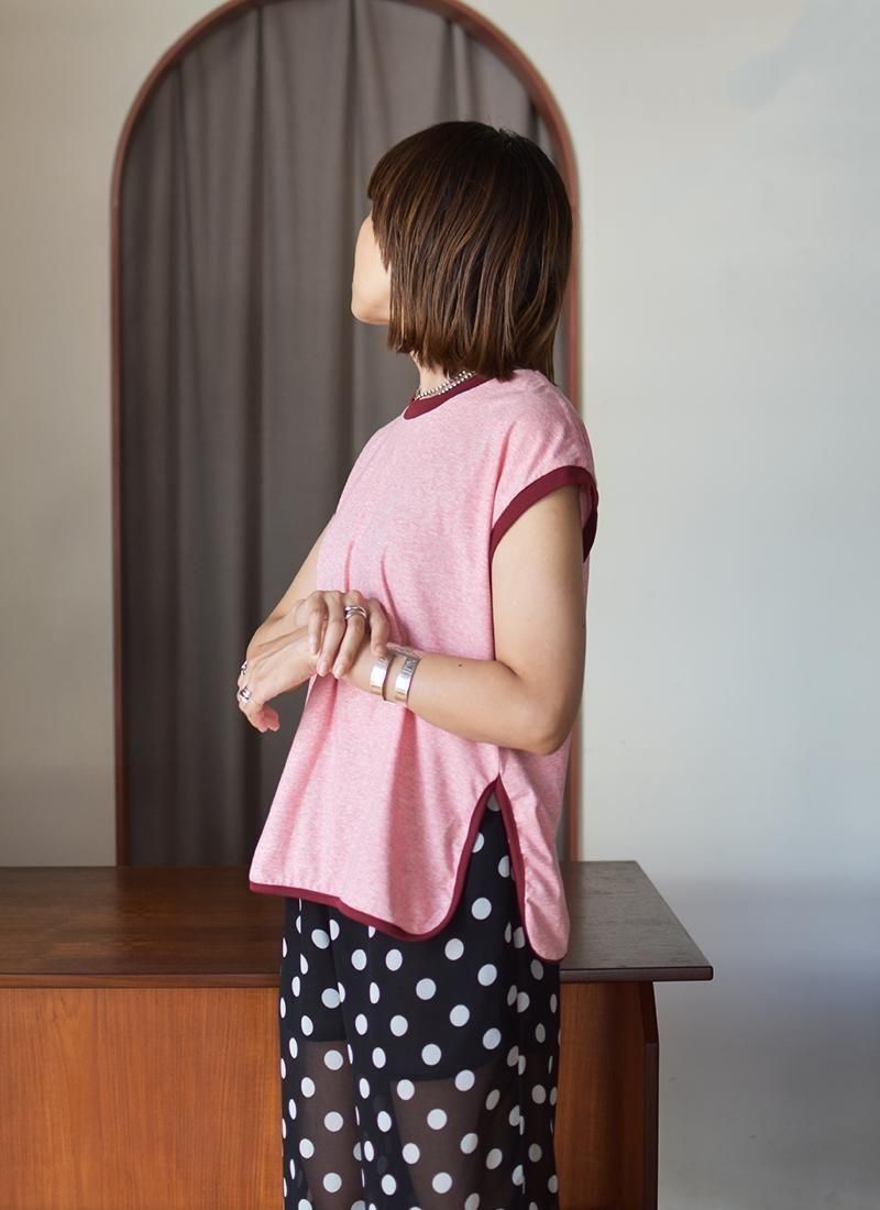 シルエットはメンズの古着のノースリーブTシャツをサンプリングし、ノースリーブが苦手な方でも着やすいフレンチスリーブの様なデザイン。