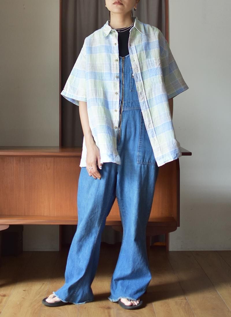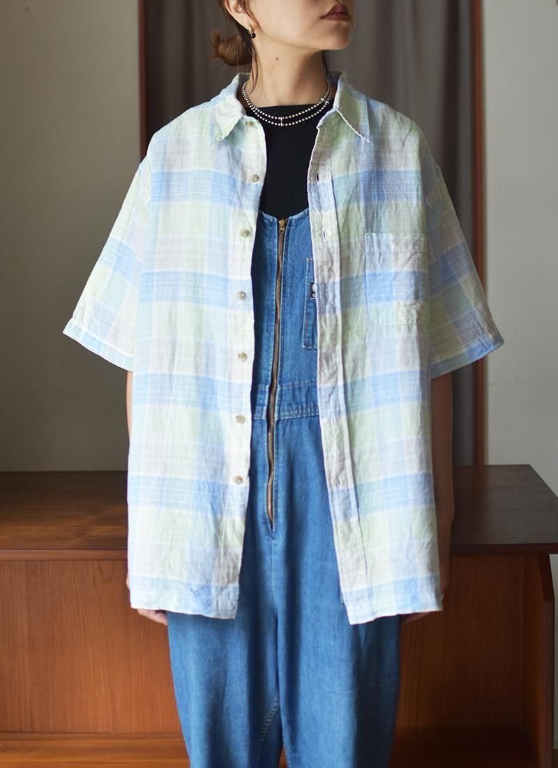 グッドレギュラーな古着が多い「ROUNDTREE & YORKE」のリネンチェックシャツ。