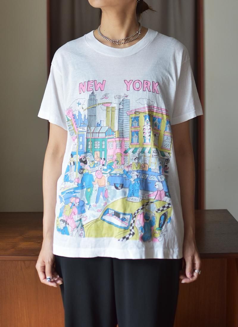 ポップなカラーリングでニューヨークの街並みががプリントされた一枚。