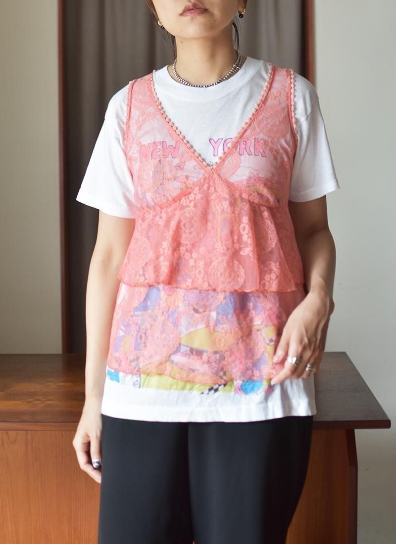 ピンクの花柄が可愛いレースキャミソール。