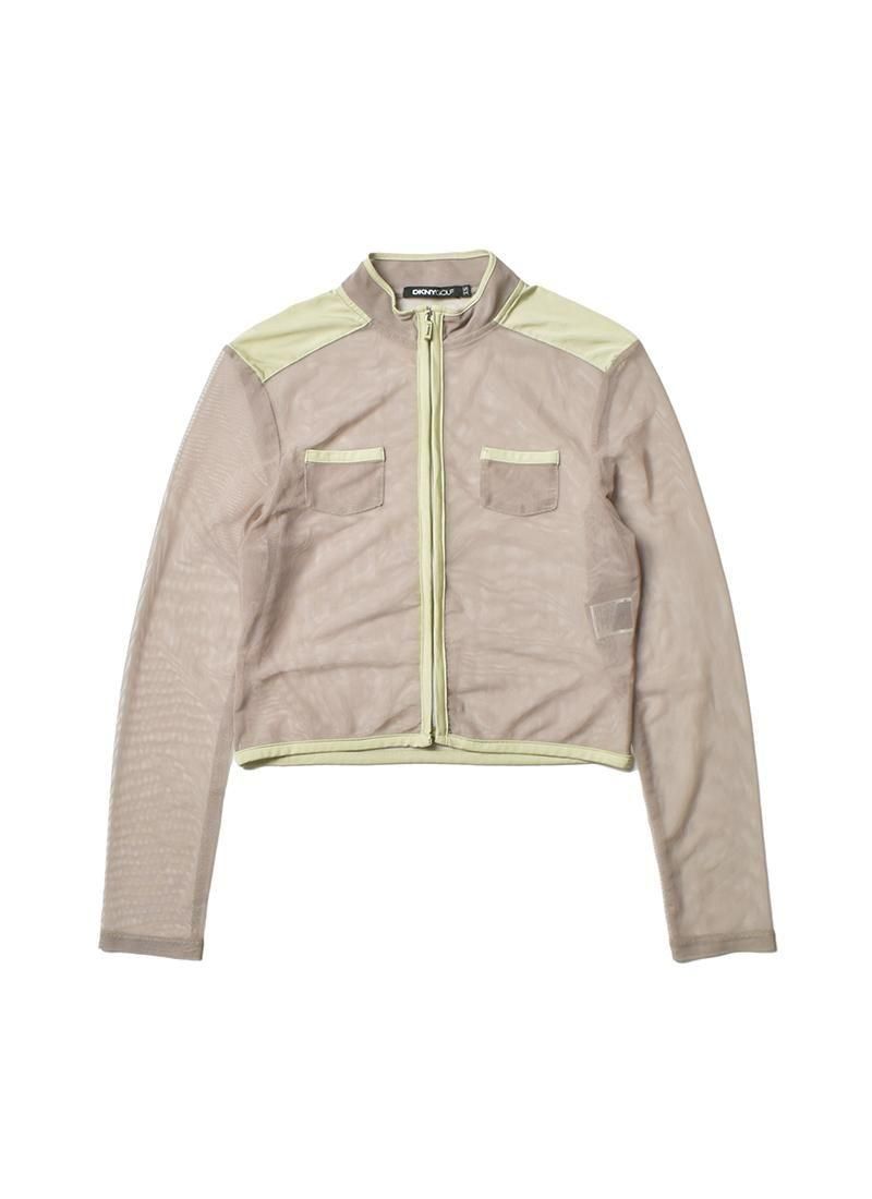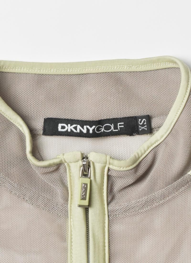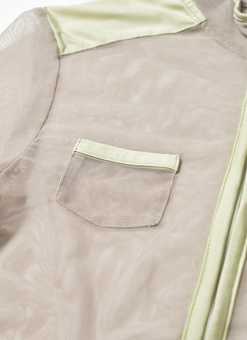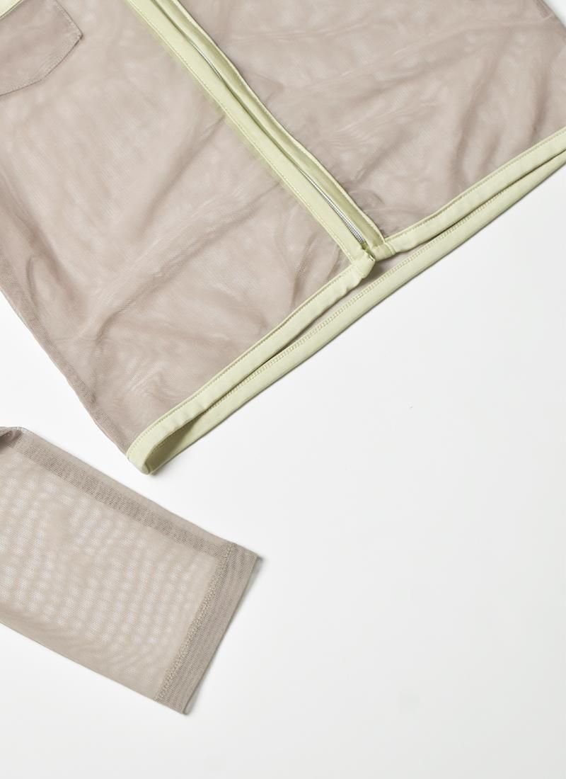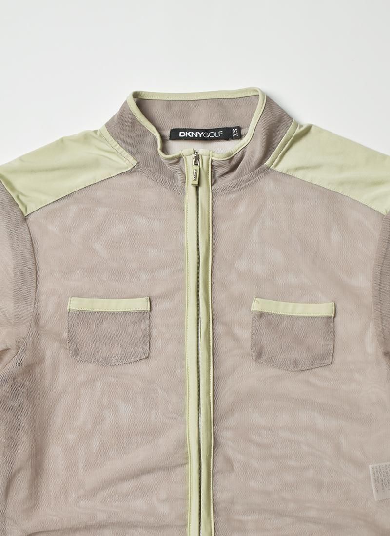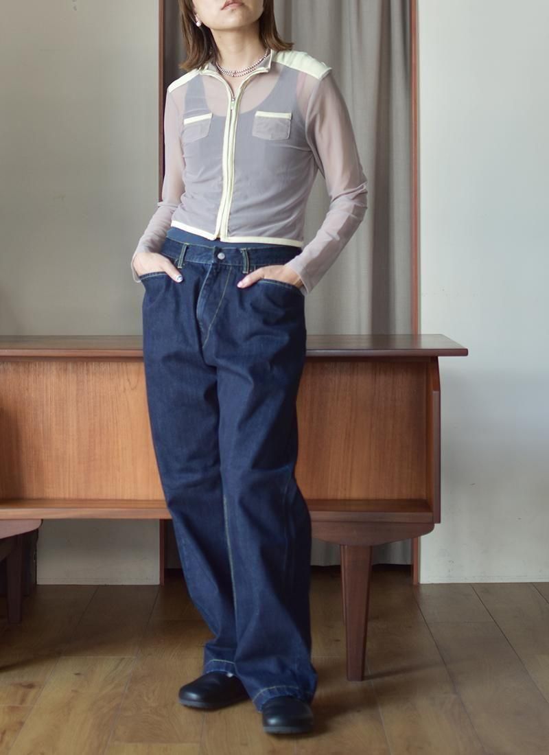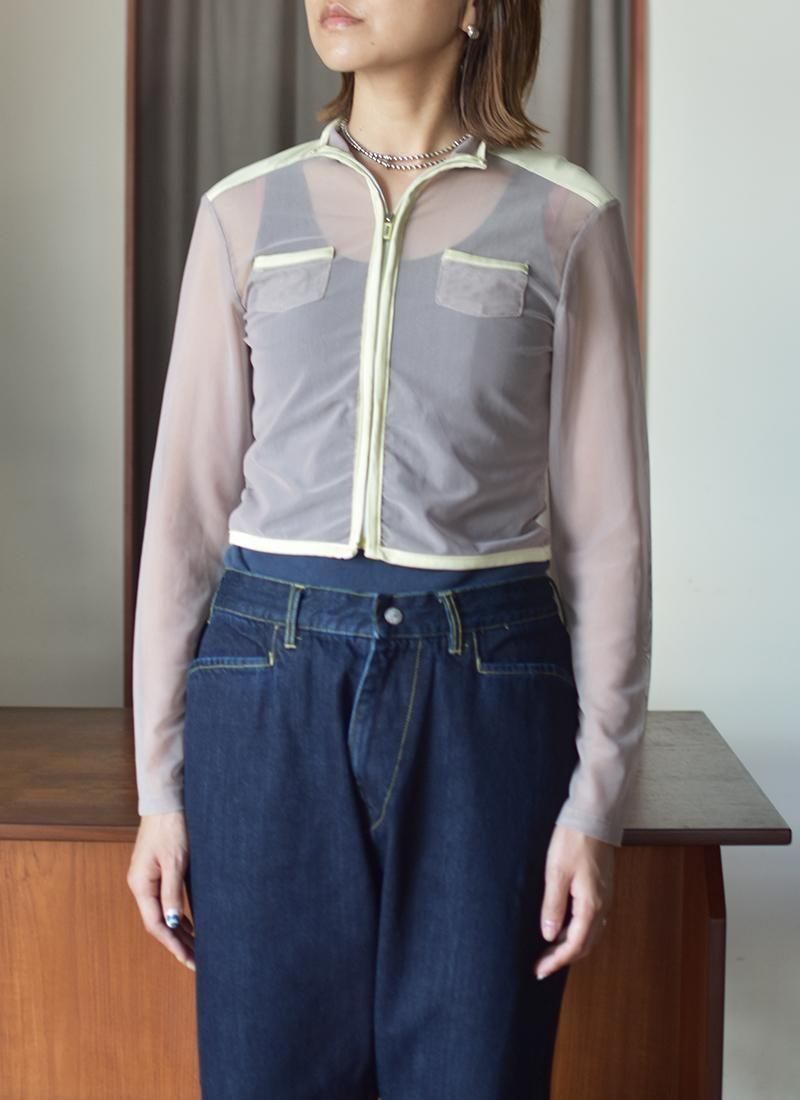 グレーxイエローの切り替えが特徴のシアーブラウス。