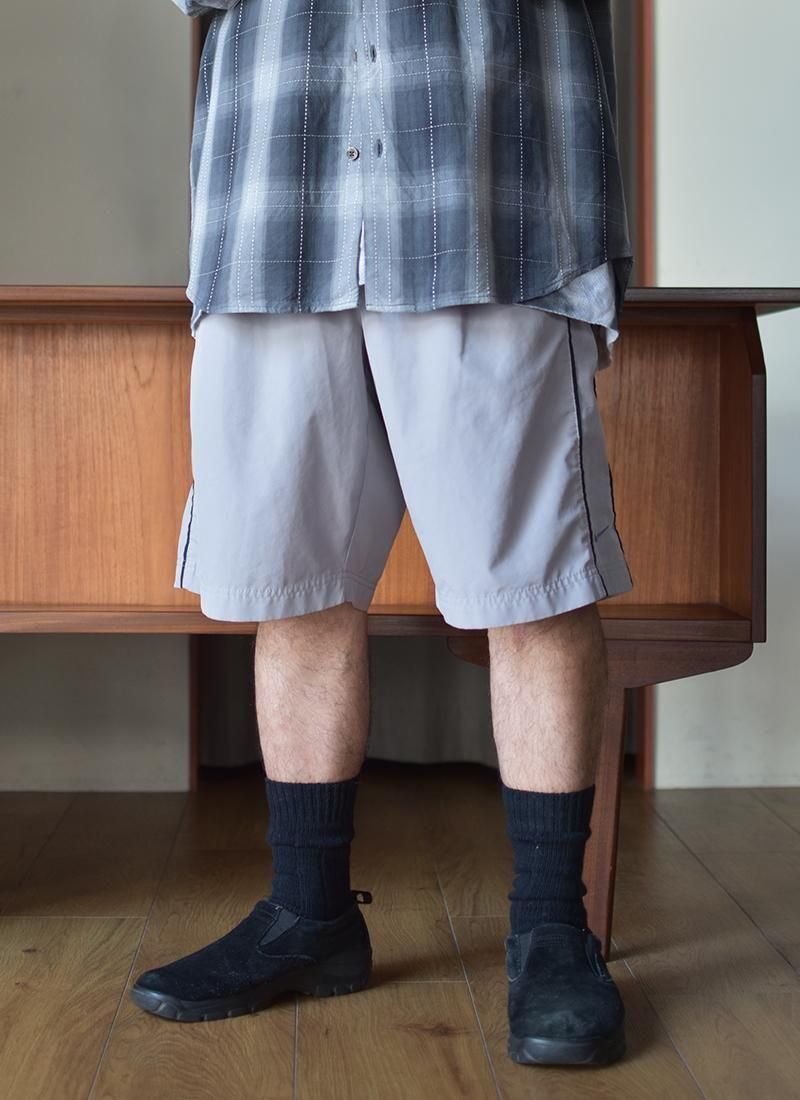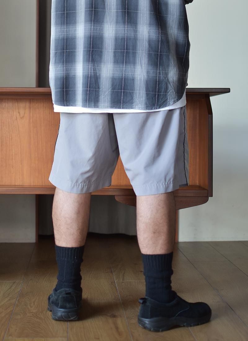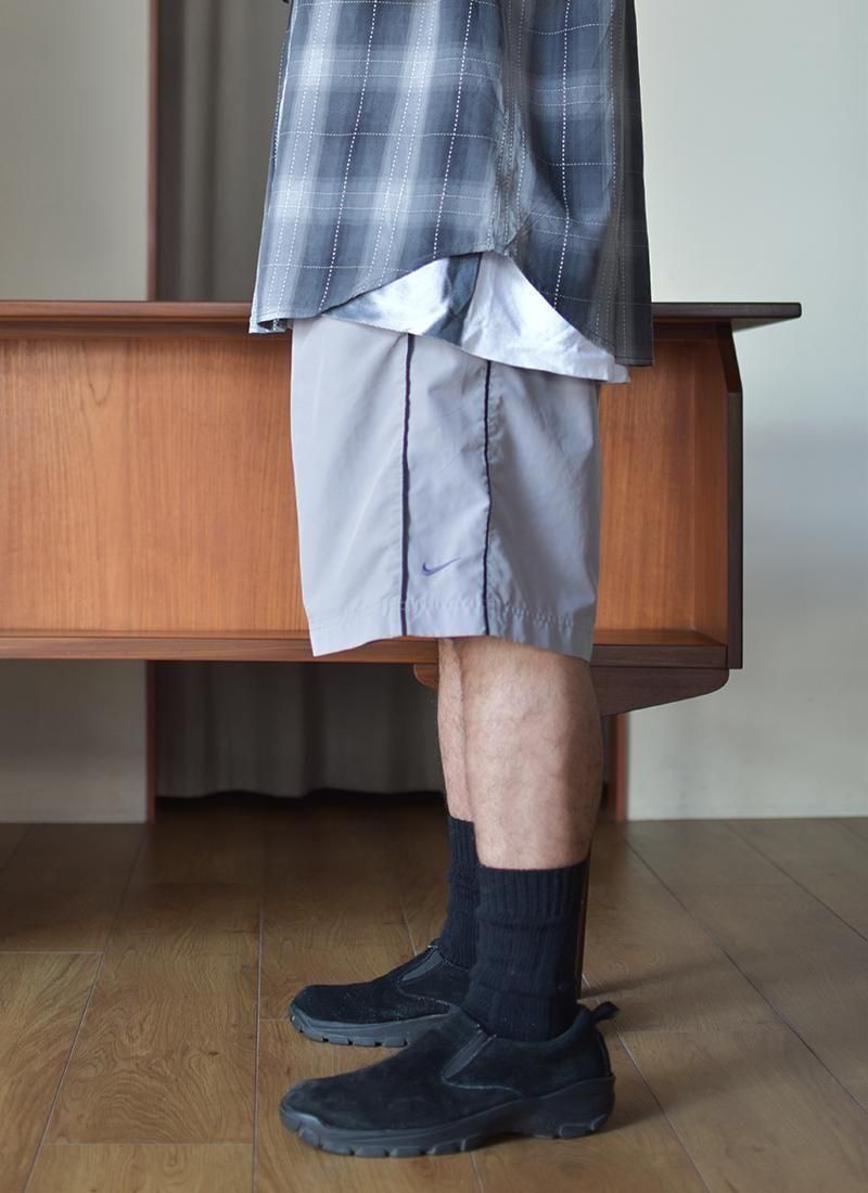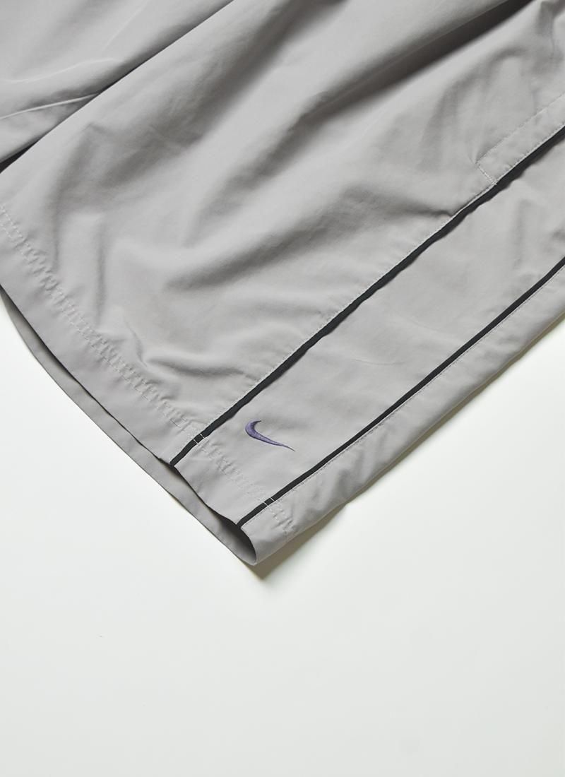 パイピングデザインにさり気ないスウォッシュロゴが洒落てるナイキのナイロンショーツ。