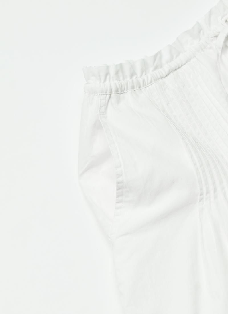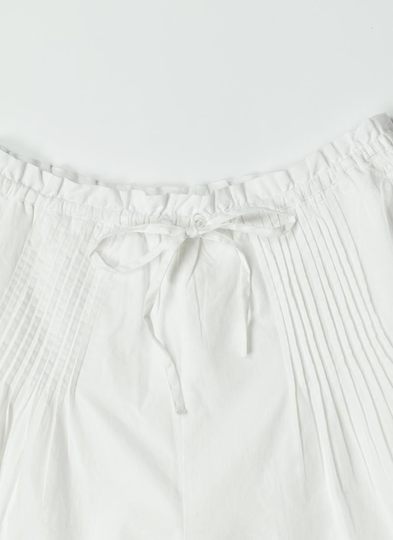 長めのピンタックでウエストまわりをすっきりと見せる、上品な印象。