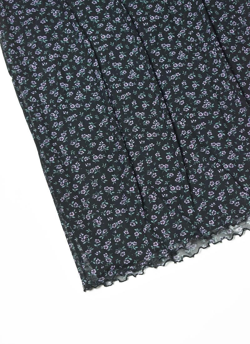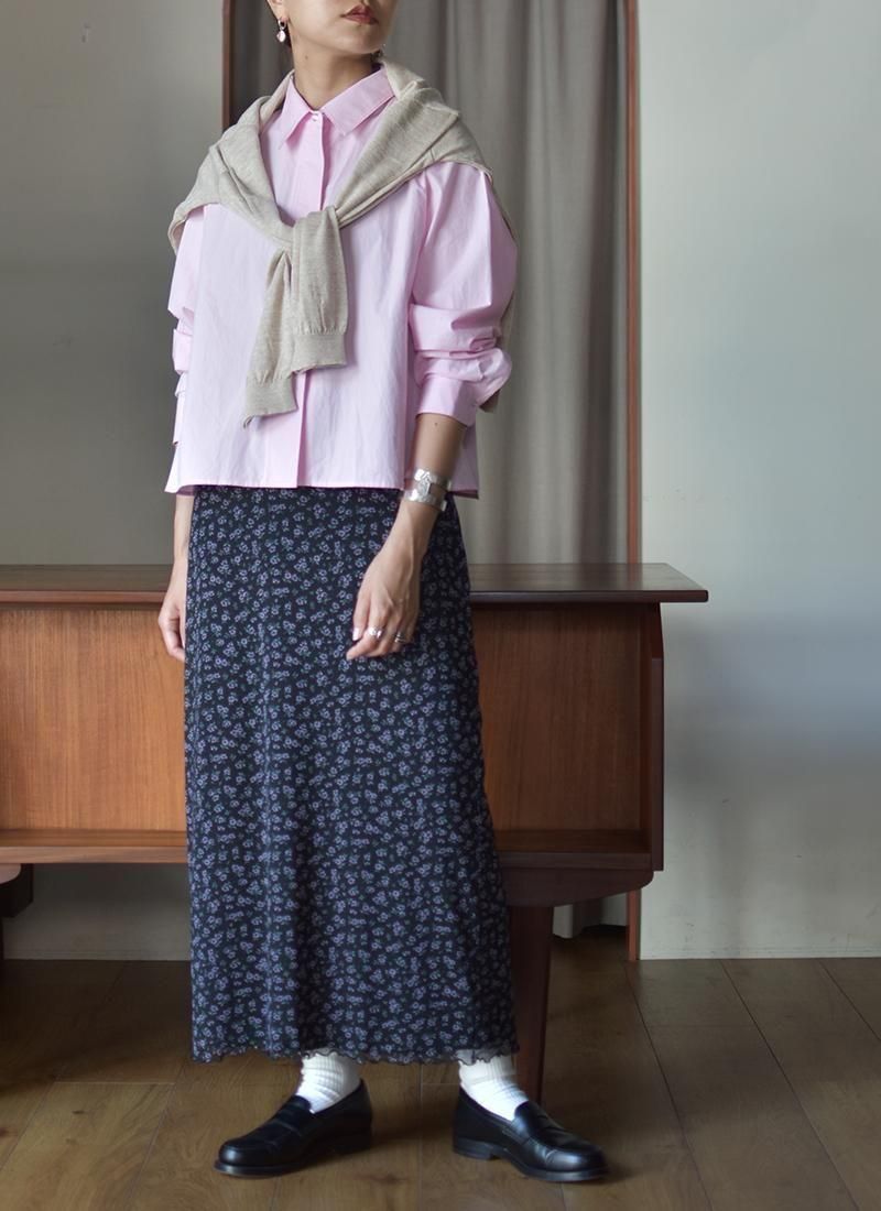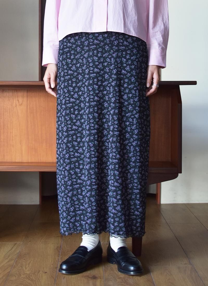 裾のメロウデザインが特徴的な小花柄のロングスカート。