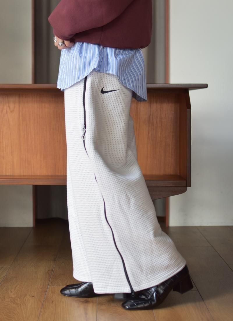 パンチング加工が施された「ナイキ」ワイドパンツになります。