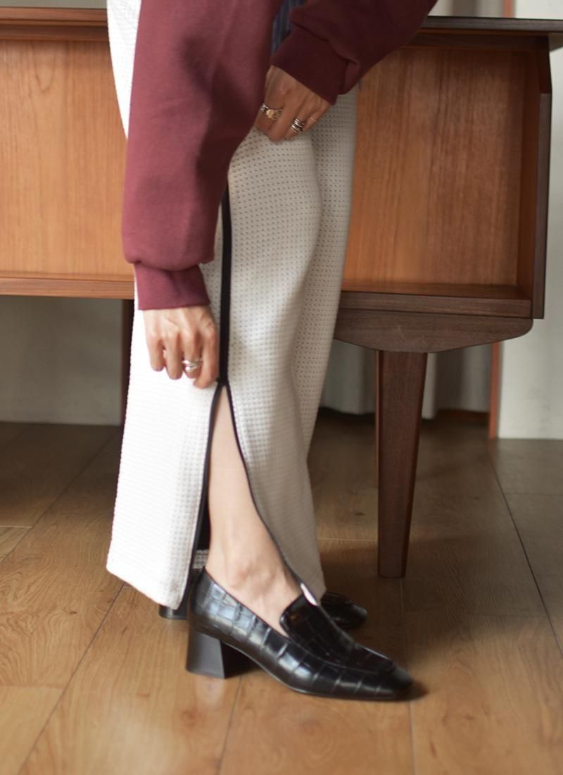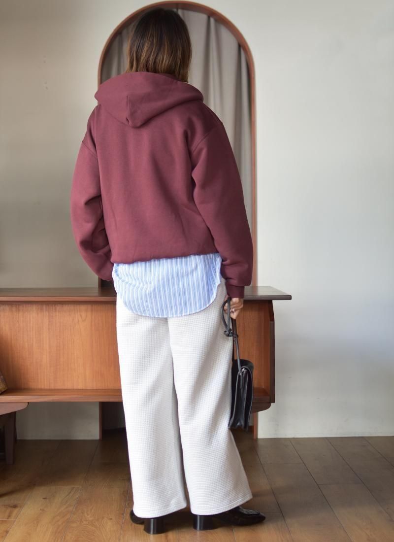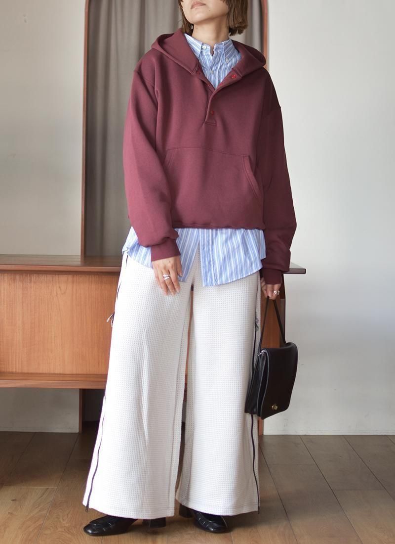腰回りはスッキリとしたデザインなので、ゆったりめなシャツやスウェットとの重ね着もかっこいいですね。
