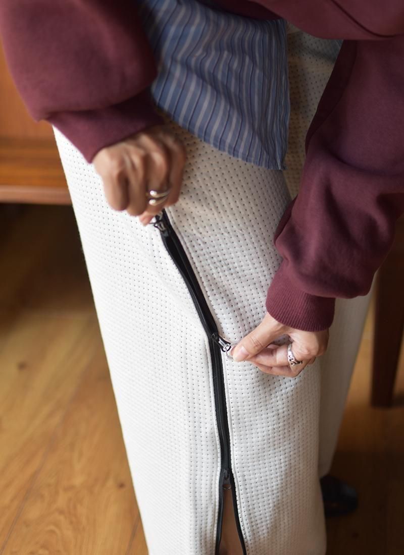 サイドには両サイド4つのファスナーが付いたユニークなデザイン。